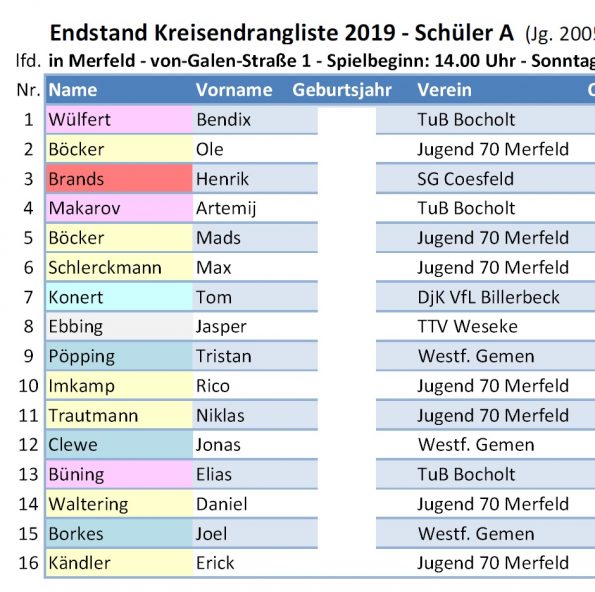 von Michael Kuth | 30. Jan. 2019 | Kreis Westmünsterland, Kreis Westmünsterland-Kreismeisterschaften-Ranglisten