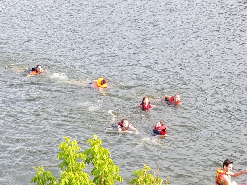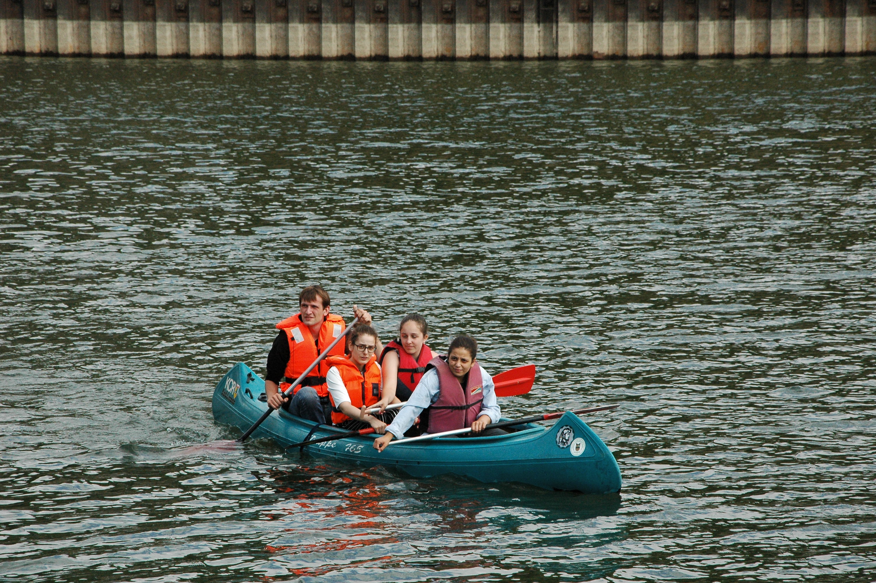 Nach der Stärkung ging es zum Rutschen und Kanufahren. Dank zweier erfahrener Kanuten ging keiner ungewollt schwimmen.