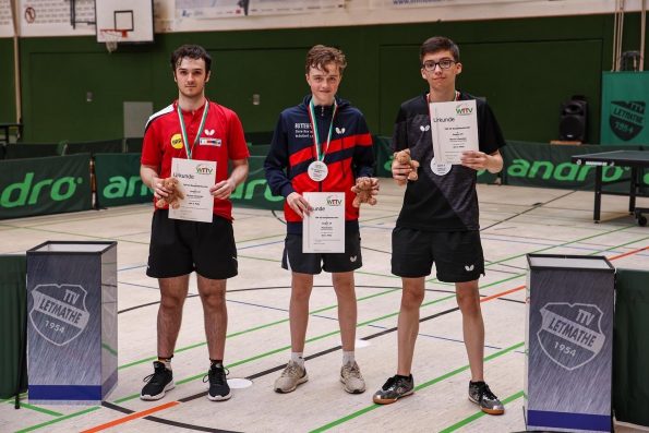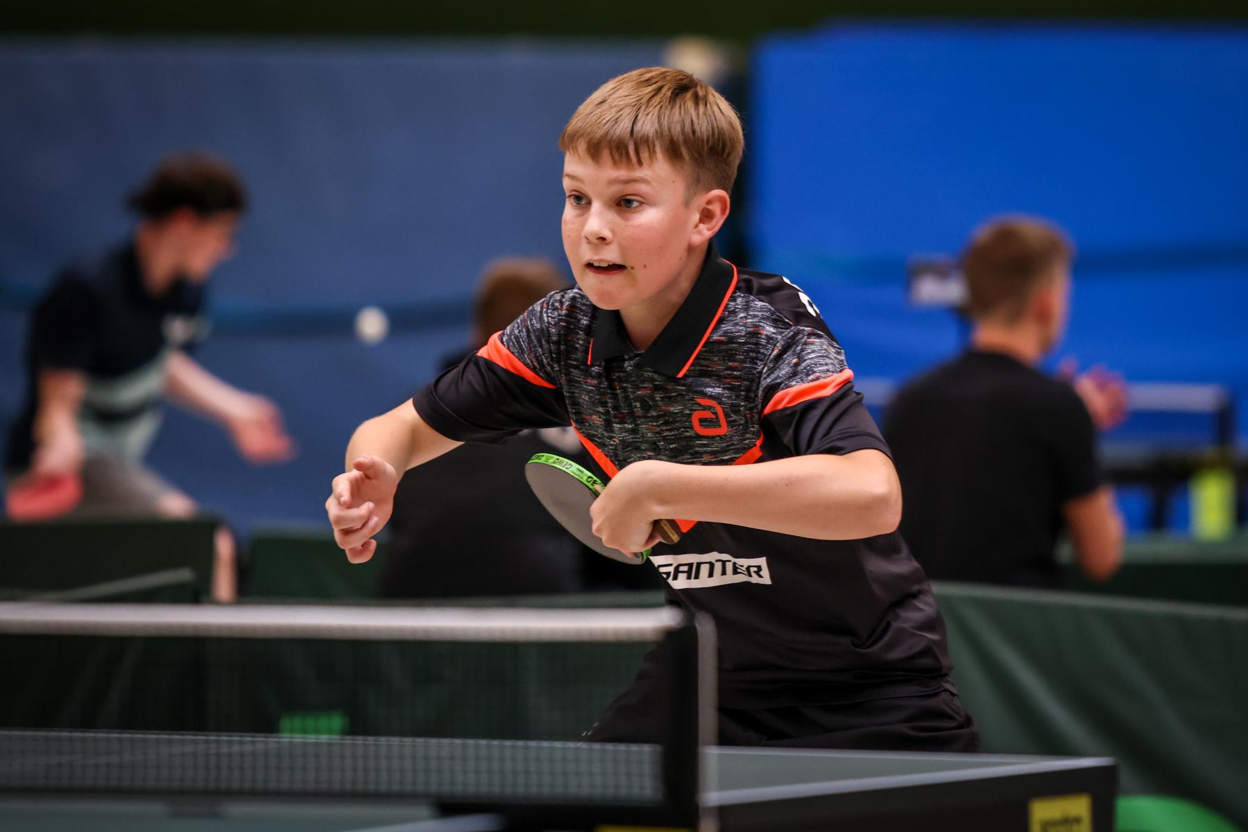 Bei den Jungen wurden zunächst acht 4er Gruppen gespielt, dabei qualifizierten sich die ersten zwei für das KO-Feld der oberen Hälfte, die Gruppendritten und -vierten spielten die Plätze 17-30 aus. Als einziger Abwehrspieler sicherte sich Paul Burkart (DJK Roland Rauxel) den Turniersieg. Im Finale setzte er sich gegen seinen ehemaligen Teamkollegen Marvin Lohsträter (TuS Holzen Sommerberg) in 4 Sätzen durch. Dabei begann das Turnier für Paul nicht so wie erhofft, denn er musste in der Gruppe zunächst eine 3:0 Niederlage gegen Timo Thönnissen (TTC Lövenich) hinnehmen.
