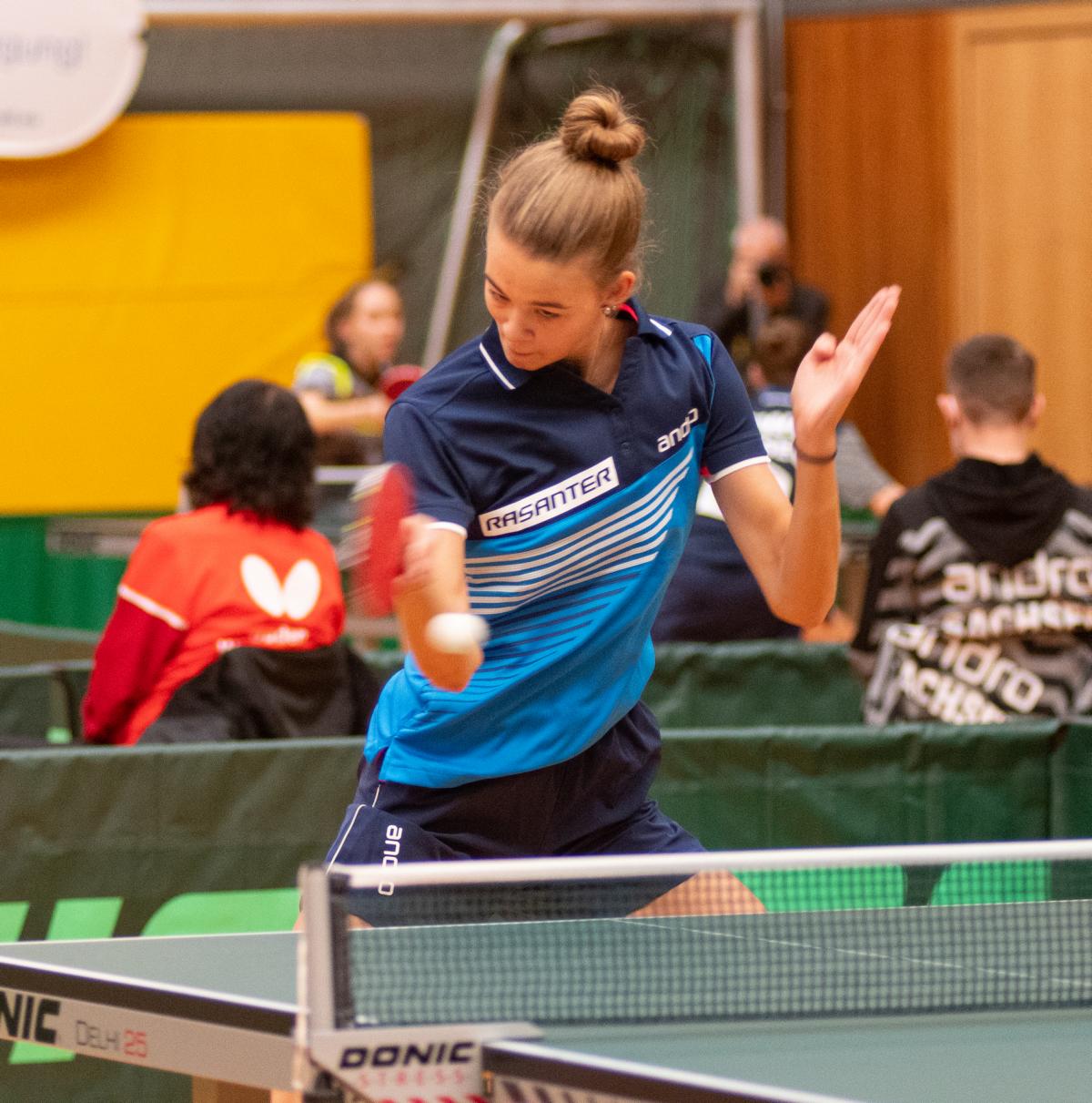 Melinda behielt bis zum Halbfinale eine weiße Weste, musste sich dann aber Laura Kaim (HETTV) und Lea Lachenmayer (TTBW) geschlagen geben. Auch Charlotte musste am gesamten Wochenende nur zwei Niederlagen einstecken, was am Ende einen tollen fünften Platz bedeutete. Felina und Hannah erhielten durch ihre vierten Plätze in der Gruppenphase beide in der Zwischenrunde noch die Chance, sich ein Ticket fürs Top 24 zu sichern. Und diese ließen sie sich dann auch nicht entgehen. Beide wurden in der Zwischenrunde durch sehr gute kämpferische Leistungen Gruppensieger und landeten damit auch dem 17. Platz.