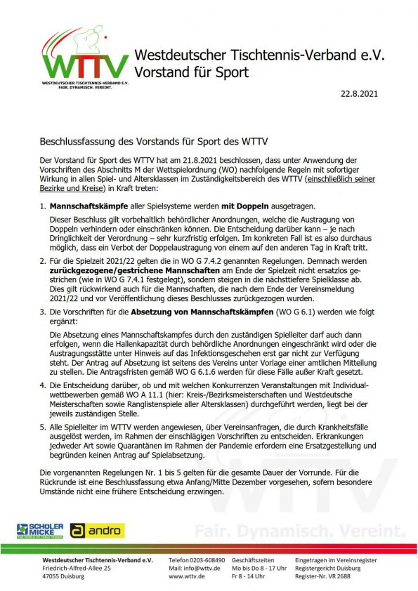 Beschlussfassung des Vorstands für Sport des WTTV_21.08.21 als Download im pdf-Format