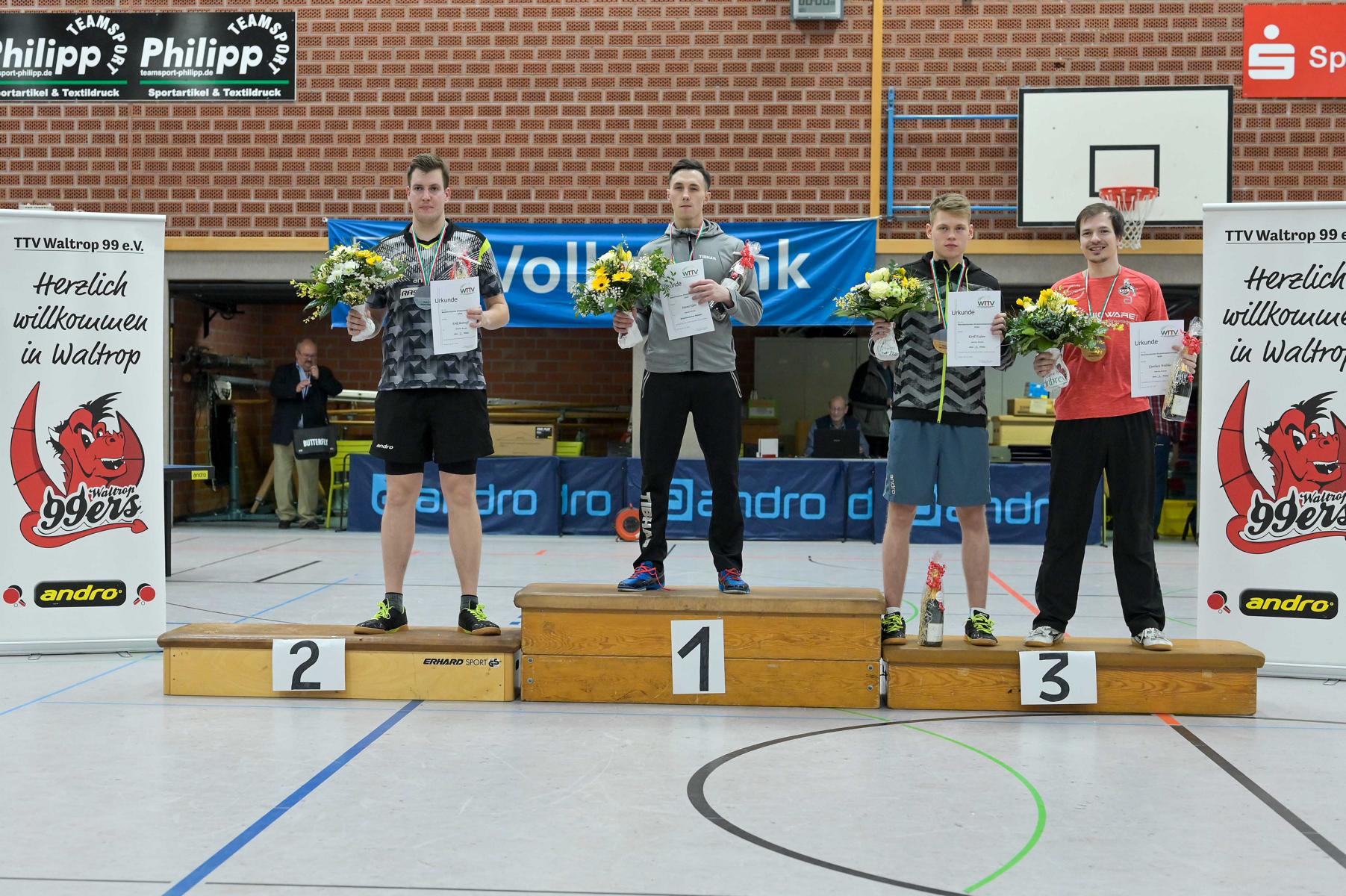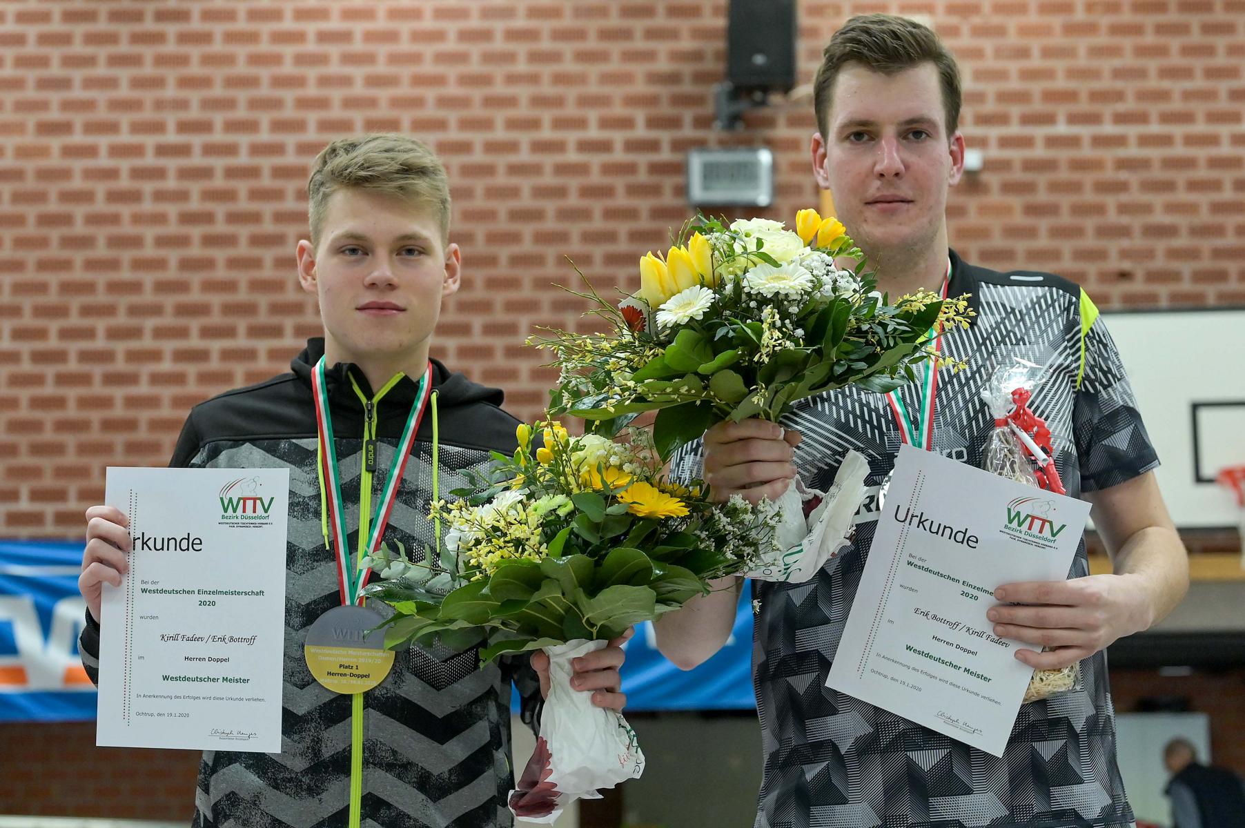 Nadine Bollmeier (TuS Bad Driburg) und Dennis Klein (TTC indeland Jülich) sichern sich bei den Westdeutschen Einzelmeisterschaften der Damen und Herren in Waltrop die Einzeltitel. Sie setzten sich in hochklassigen Endspielen gegen Anne Sewöster (TuS Bardüttingdorf) und Erik Bottroff (Borussia Dortmund) durch. Bronze gewinnen bei den Damen Yuki Tsutsui (TuS Bad Driburg) und Leonie Berger (Borussia Düsseldorf) sowie Gianluca Walther (1. FC Köln) und Kirill Fadeev (Borussia Dortmund) bei den Herren.