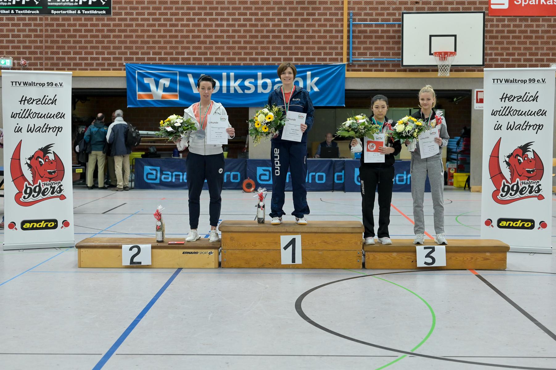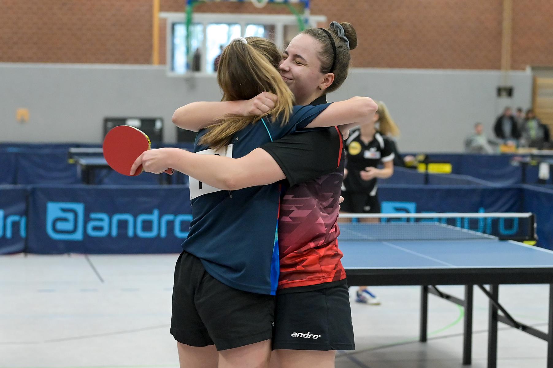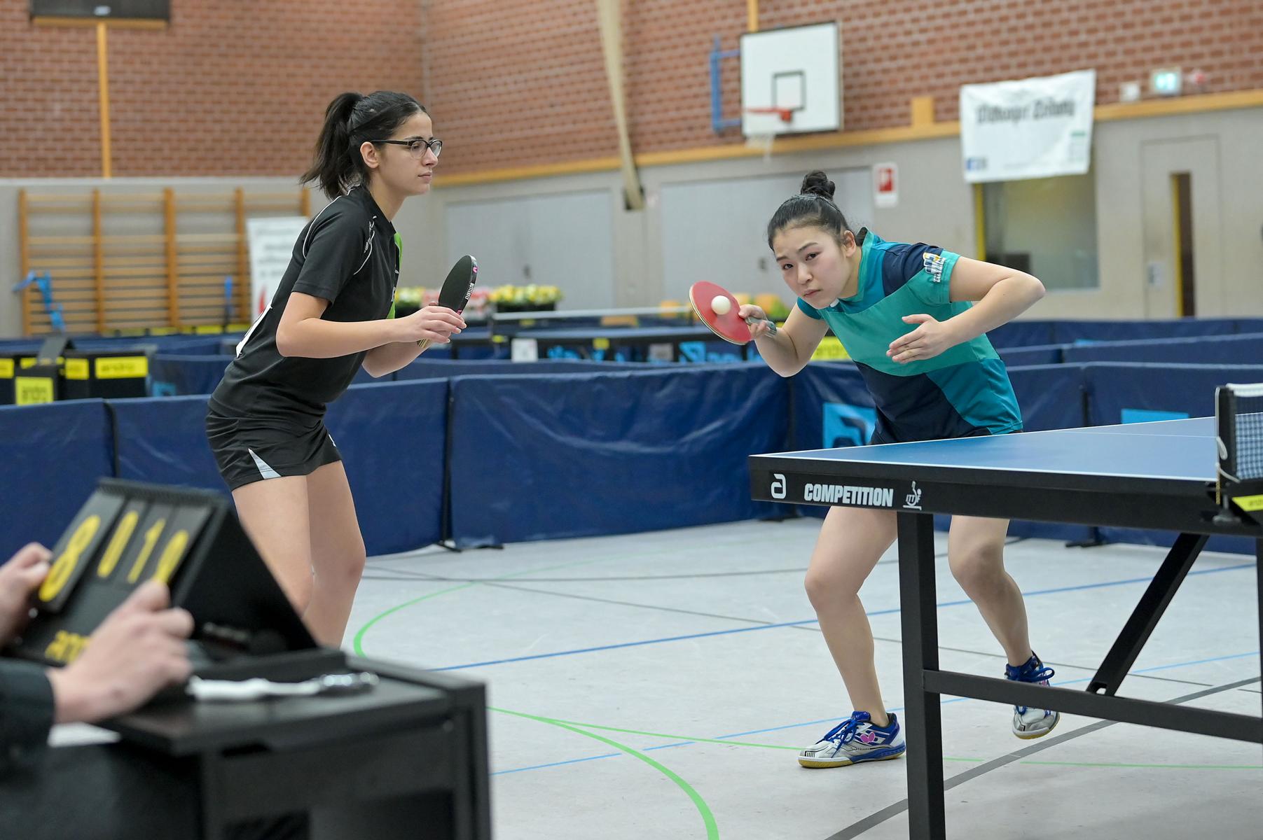 Im Damen-Doppel gewinnen Hannah und Charlotte Schönau (TTF Kreuzau/TTC GW Fritzdorf) vor Yuki Tsutsui/Verena Duhr (TuS Bad Driburg/Bayer 05 Uerdingen). Platz drei holen sich Melissa Dorfmann/Leonie Berger (Borussia Düsseldorf) und Anne Sewöster/Christiane Thöne (TuS Bardüttingdorf/TTC Paderborn)