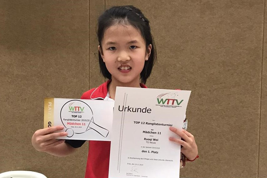 Am kommenden Freitag wird der WTTV mit vier Spielerinnen und vier Spielern nach Nassau fahren um an der diesjährigen DTTB-Talentsichtung Mannschaft teilzunehmen. Für den WTTV starten in der Schülerinnen-Konkurrenz Philippa von Bandemer (Borussia Düsseldorf), Laura Milos (TTV Lage), Ruoqi Wei (TG Neuss) und Rhea Zhu Chen (Borussia Düsseldorf). Bei den Schülern werden Danielius Galatiltis (TTC Schwalbe Bergneustadt), Alexander Sahakiants (1. FC Köln), Ole Brock (LTV Lippstadt) und Bruno Moch (TTC Lövenich) den WTTV vertreten.