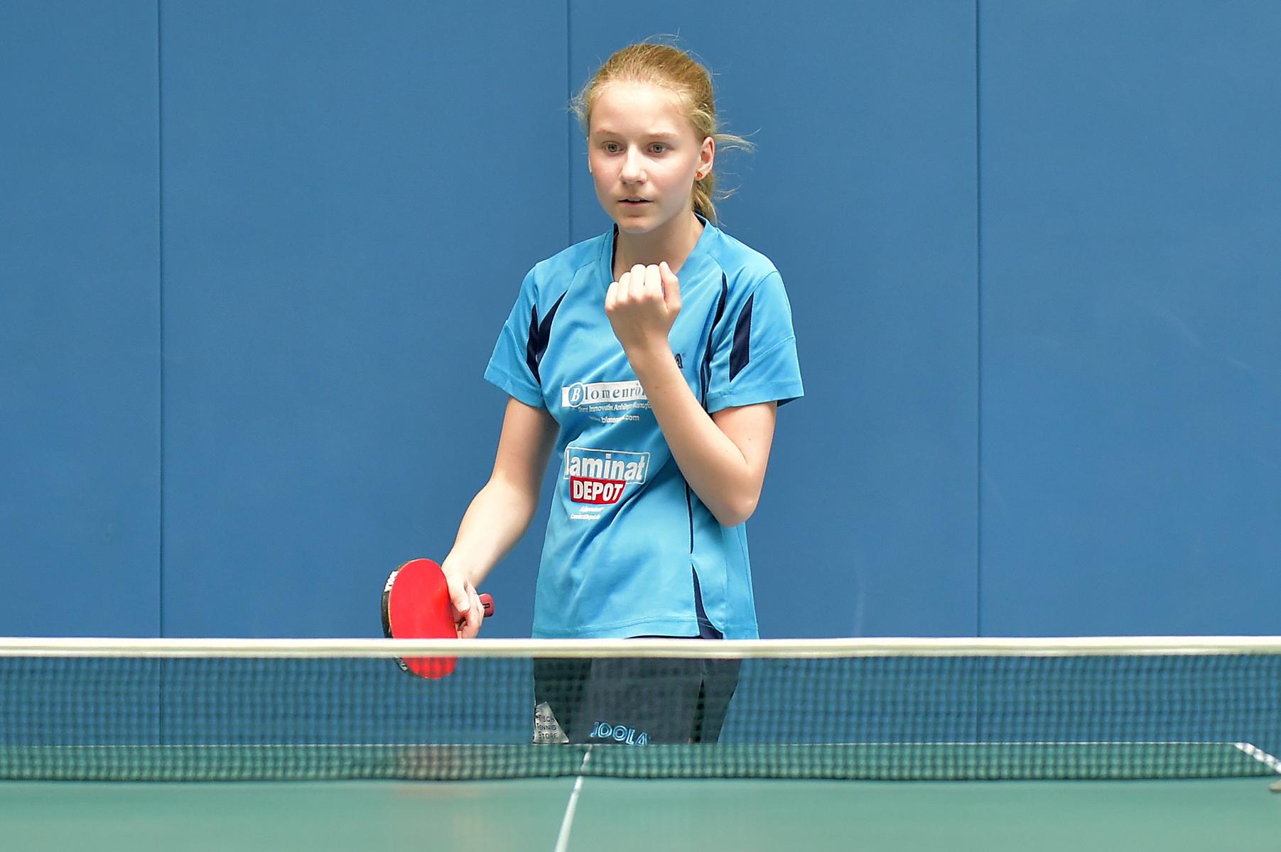 Nachdem Eireen den 3:0-Sieg gegen Sophia in der Vorrunde, mit einem 18:16 im ersten Satz, und Luisa den knappen 3:2-Erfolg gegen Medeea mit in die Endrunde nahmen und beide dann, Eireen gegen Medeea und Luisa gegen Sophia, ihre nächsten Spiele auch gewinnen konnten, kam es zum Endspiel um Platz eins zwischen den beiden Spielerinnen. Hier konnte sich Eireen eine 2:1-Satzführung erspielen, ehe Luisa immer besser ins Spiel fand, sich Satz vier mit 11:6 und dann den ausgegelichenen Entscheidungssatz denkbar knapp mit 11:9 sicherte.