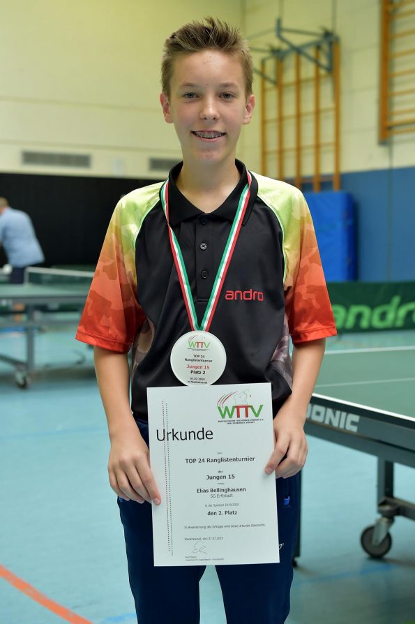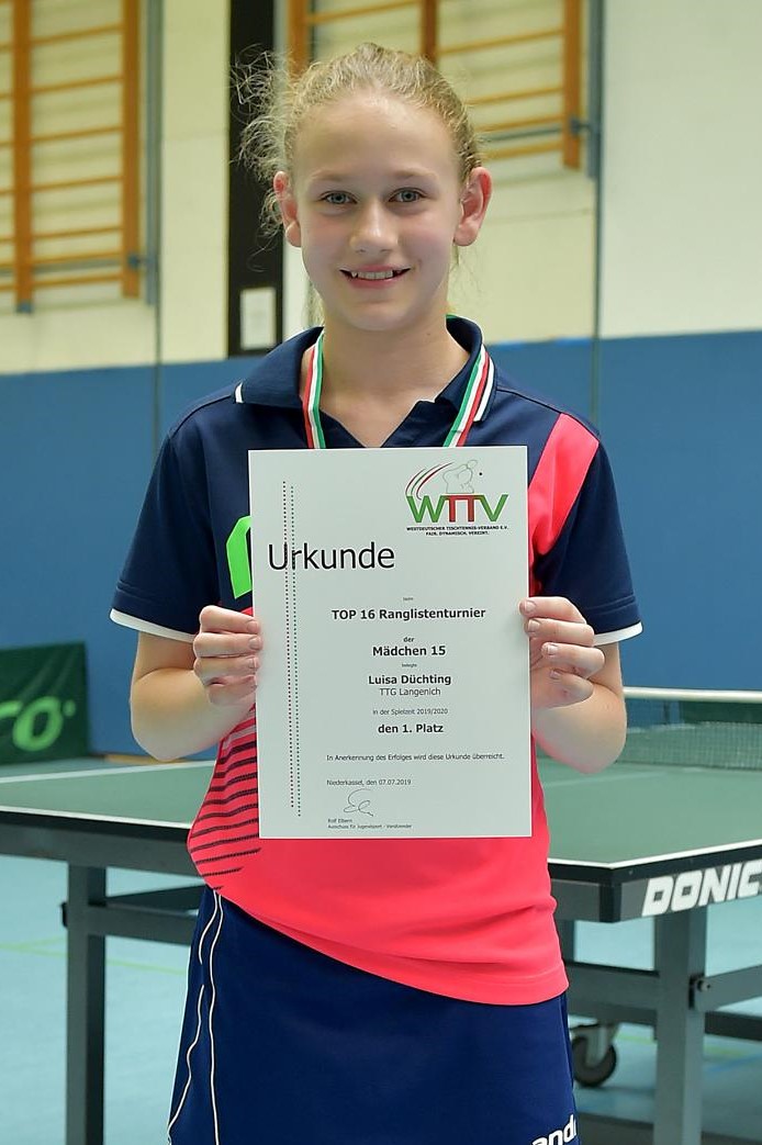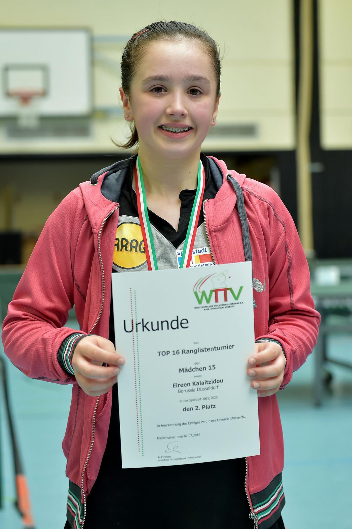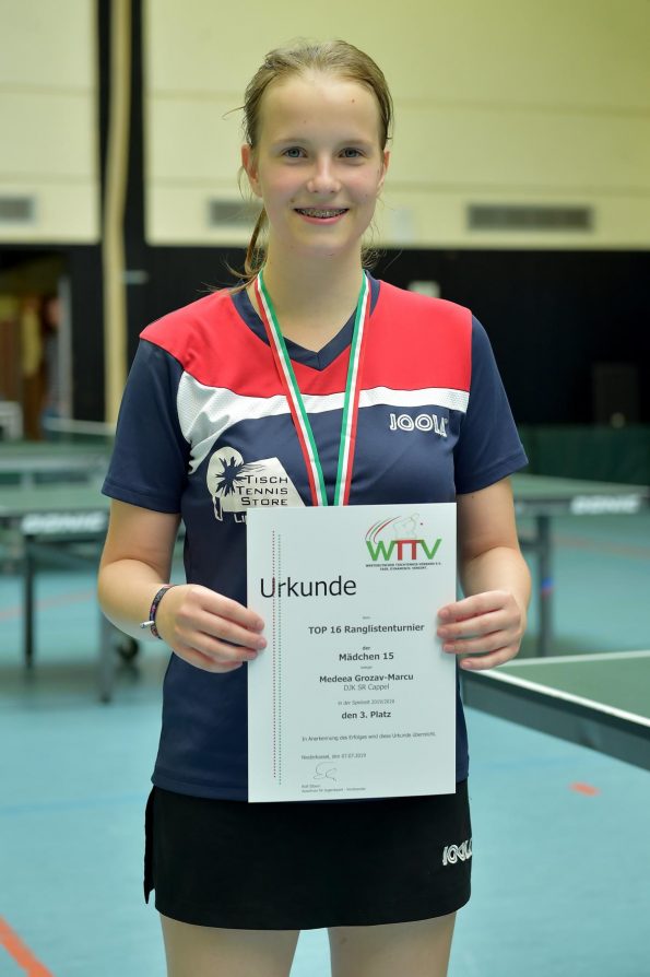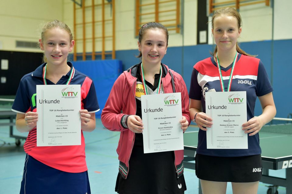 Die TTG Niederkassel war Gastgeber des TOP 24 Ranglistenturniers der Jungen 15 und des TOP 16 Ranglistenturniers der Mädchen. Bei den Mädchen konnte Luisa Düchting (TTG Langenich) ihren Titel verteidigen. Platz zwei sicherte sich Eireen Kalaitzidou (Borussia Düsseldorf) vor Medeea Groozav-Marcu (DJK SR Cappel), die damit ebenfalls erneut auf dem Treppchen stand. Den vierten Platz holte sich Sophia Heck (TTC BW Brühl-Vochem).