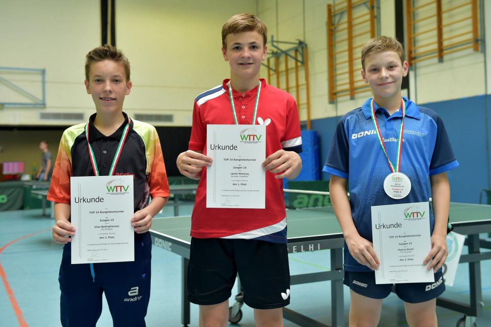 Bei den Jungen erreichte László Mohácsy (Borussia Düsseldorf), der beim TOP 32 noch sechster wurde, mit Elias Bellinghausen (SG Erftstadt), Marius Strahl, und Melwyn Saget (beide TTC Lövenich) die Endrunde um die Plätze 1-4. Im Gegensatz zu seinen drei Endrundengegnern erreichte der spätere Sieger diese nur durch das bessere Satzverhältnis in der Vorrunde gegenüber Noah Hersel (1. FC Köln) und Friedrich Kühn von Burgsdorff (Post SV Gütersloh) gegen den László mit 3:1 unterlegen war.