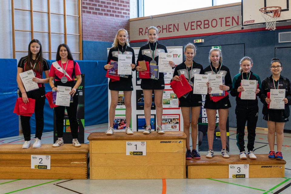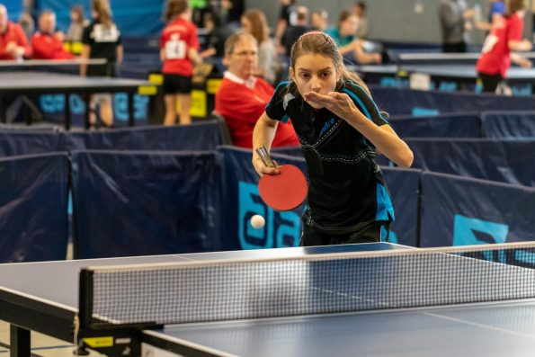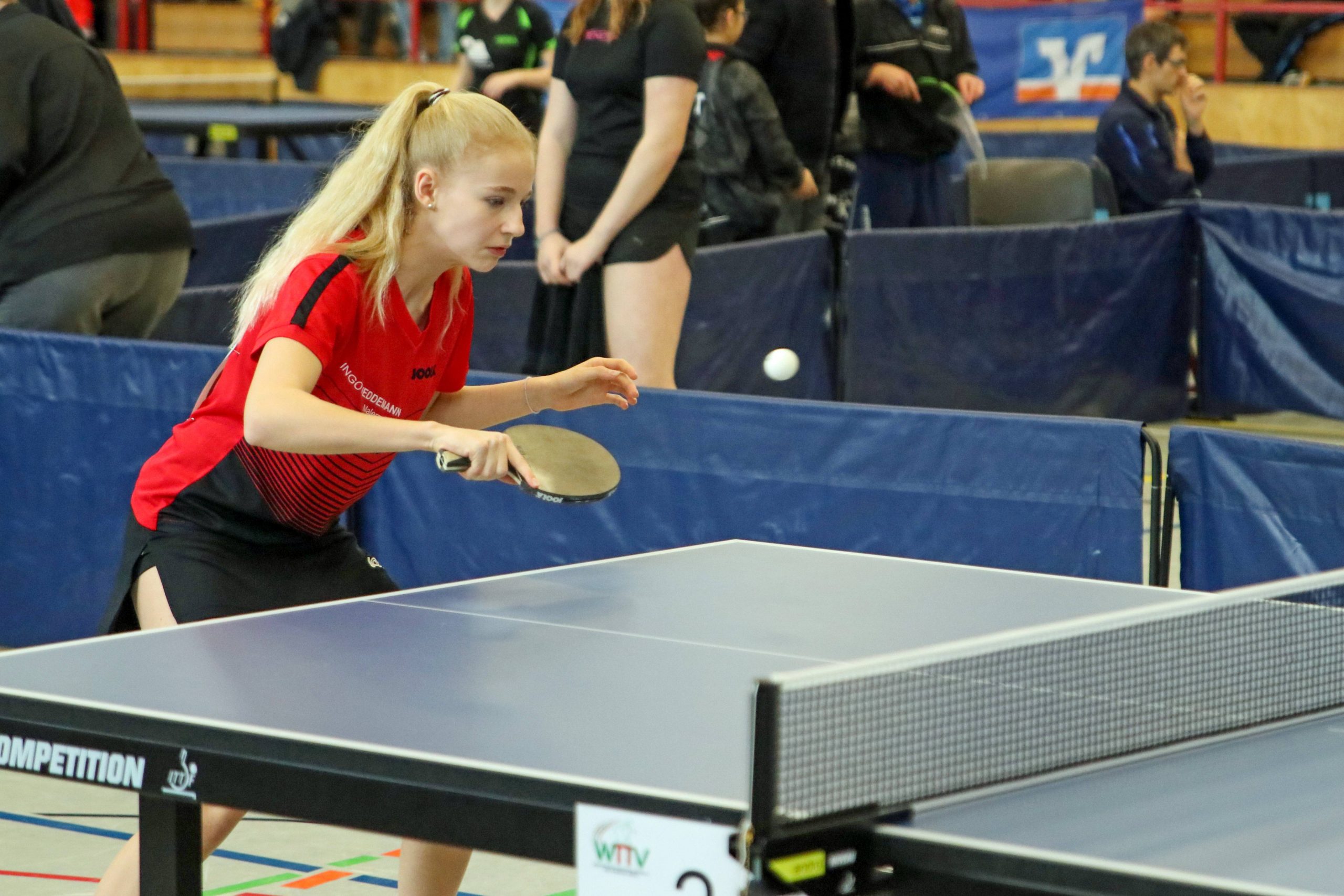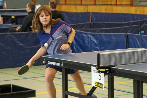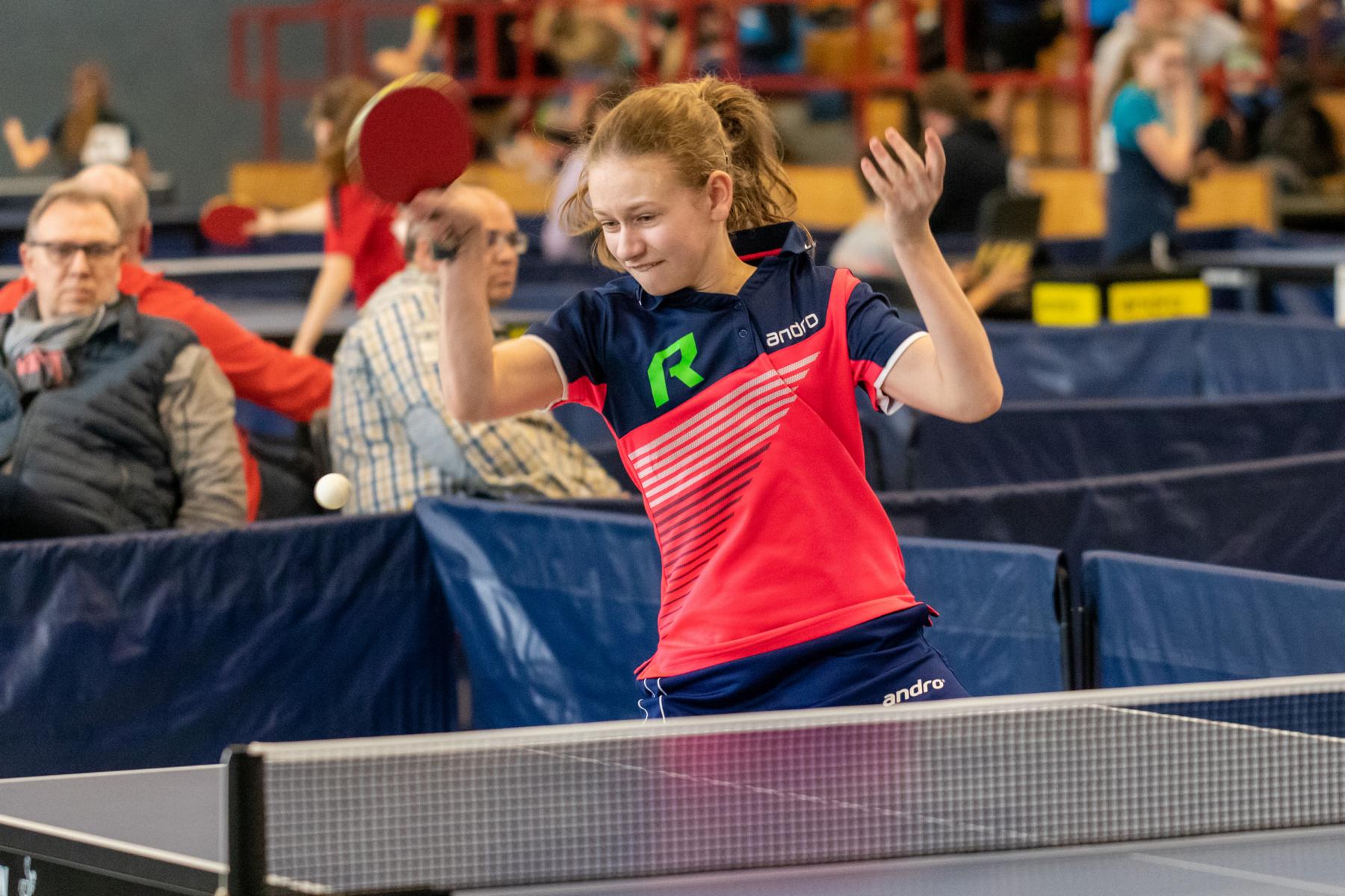 In der Mädchen-Konkurrenz gab es keine großen Überraschungen. Lediglich, dass Jana Schultza im Viertelfinale gegen ihre Doppel- und Vereinskameradin Medeea Grozav-Marcu gewann, hätte vielleicht nicht jeder in der Halle voraus gesagt. So kam es dann auch zum Finale der beiden topgesetzten Melinda Maiwald, die im Achtel- und Viertelfinale über die volle Distanz gehen musste, und Luisa Düchting, die sich im Halbfinale sehr knapp nach einem 1:2-Satzrückstand gegen Lina-Marie Engelmann (SV Bergheim) durchsetzte. In einem sehr knappen Finale fand zuerst Melinda besser ins Spiel und sicherte sich Satz eins mit 11:6. Doch dann riss etwas der Faden, Luisa wurde mutiger und holte sich Satz zwei und drei relativ deutlich. Nachdem Melinda zum 2:2 ausgleichen konnte, war der Entscheidungssatz völlig ausgeglichen. Am Ende hatte Luisa mit 13:11 hauchdünn die Nase vorne und holte sich nach dem Ranglistensieg nun auch den Titel bei den Einzelmeisterschaften.