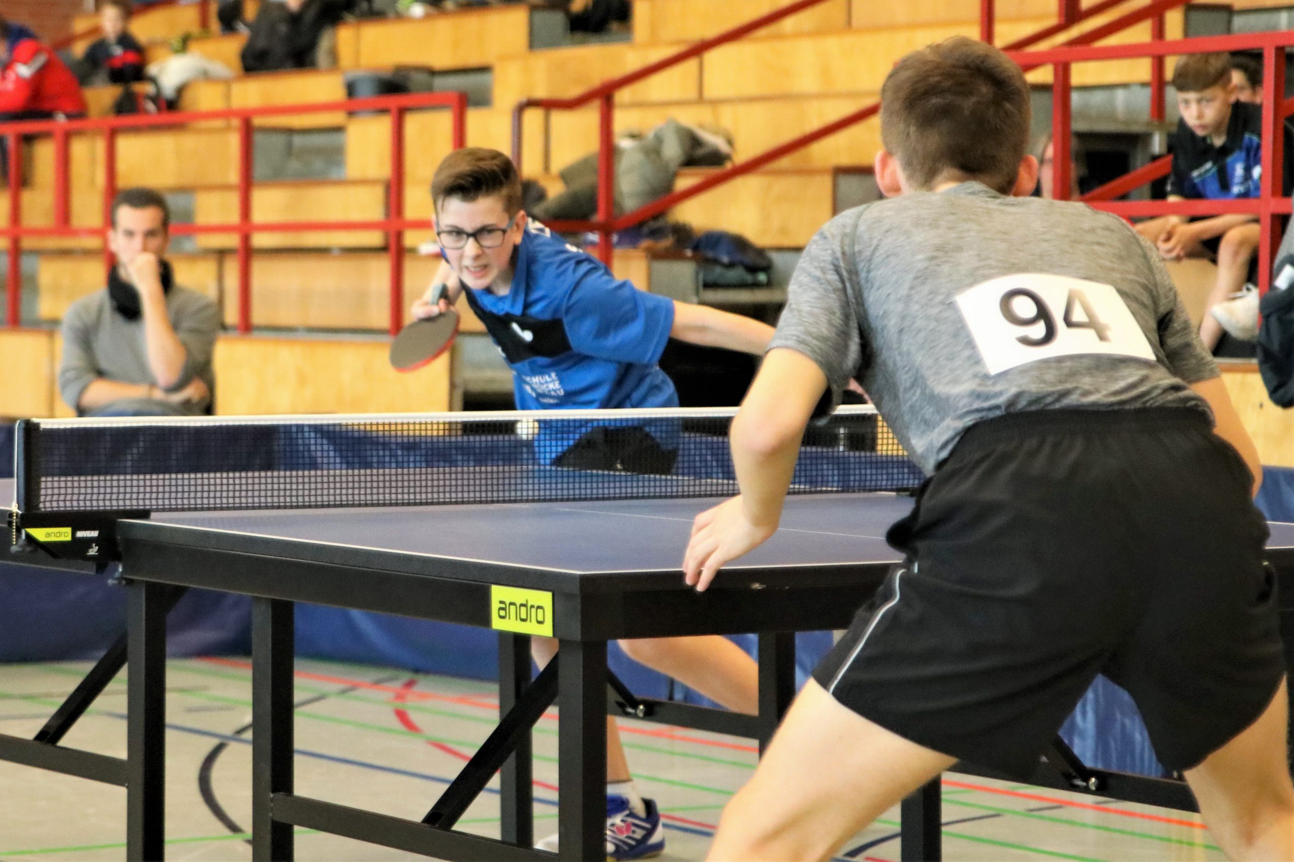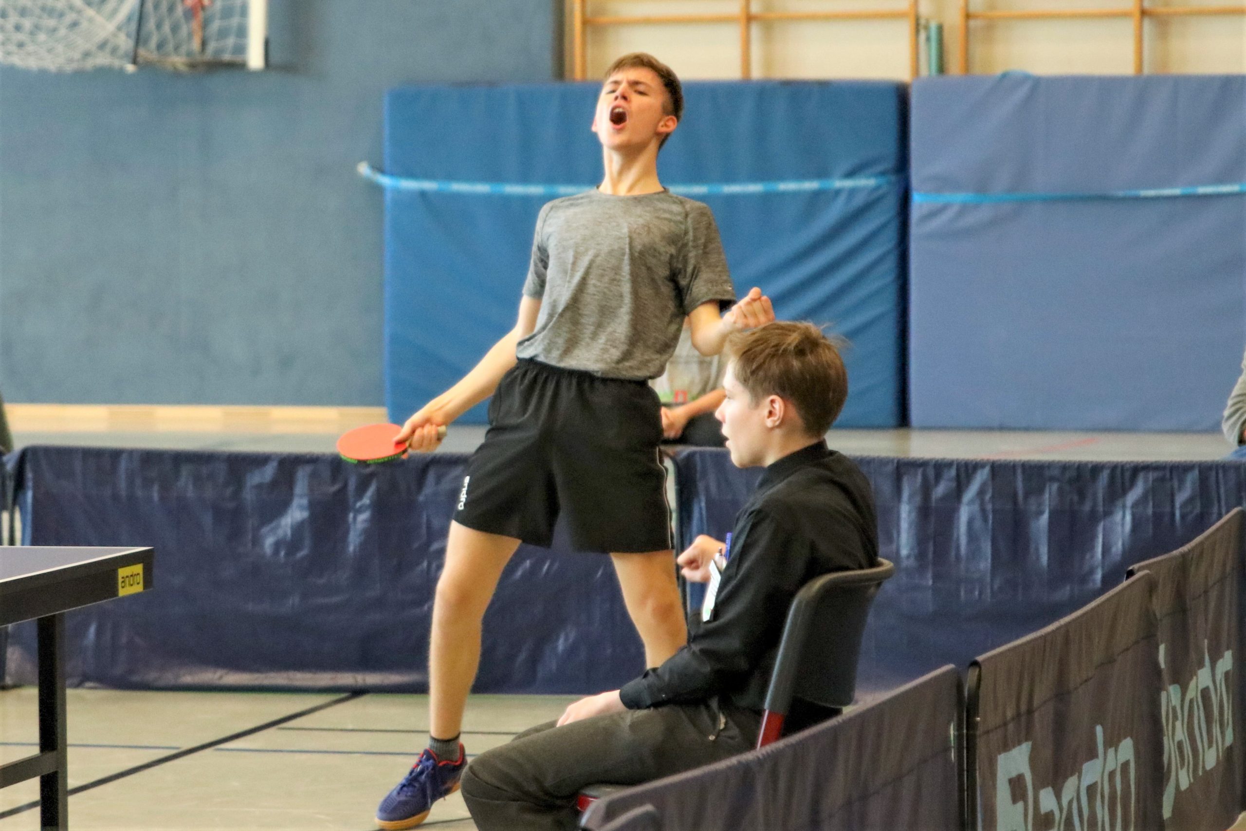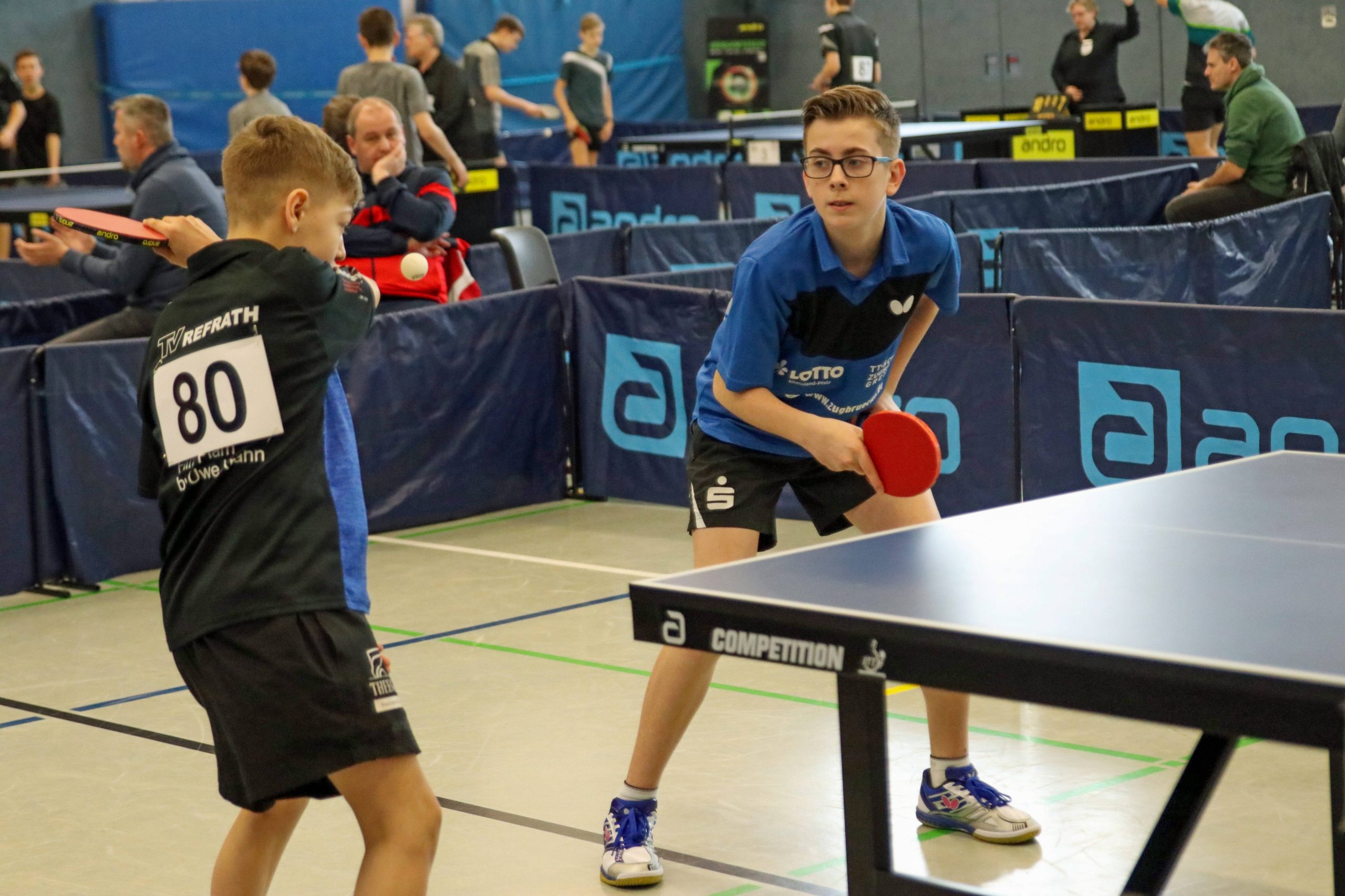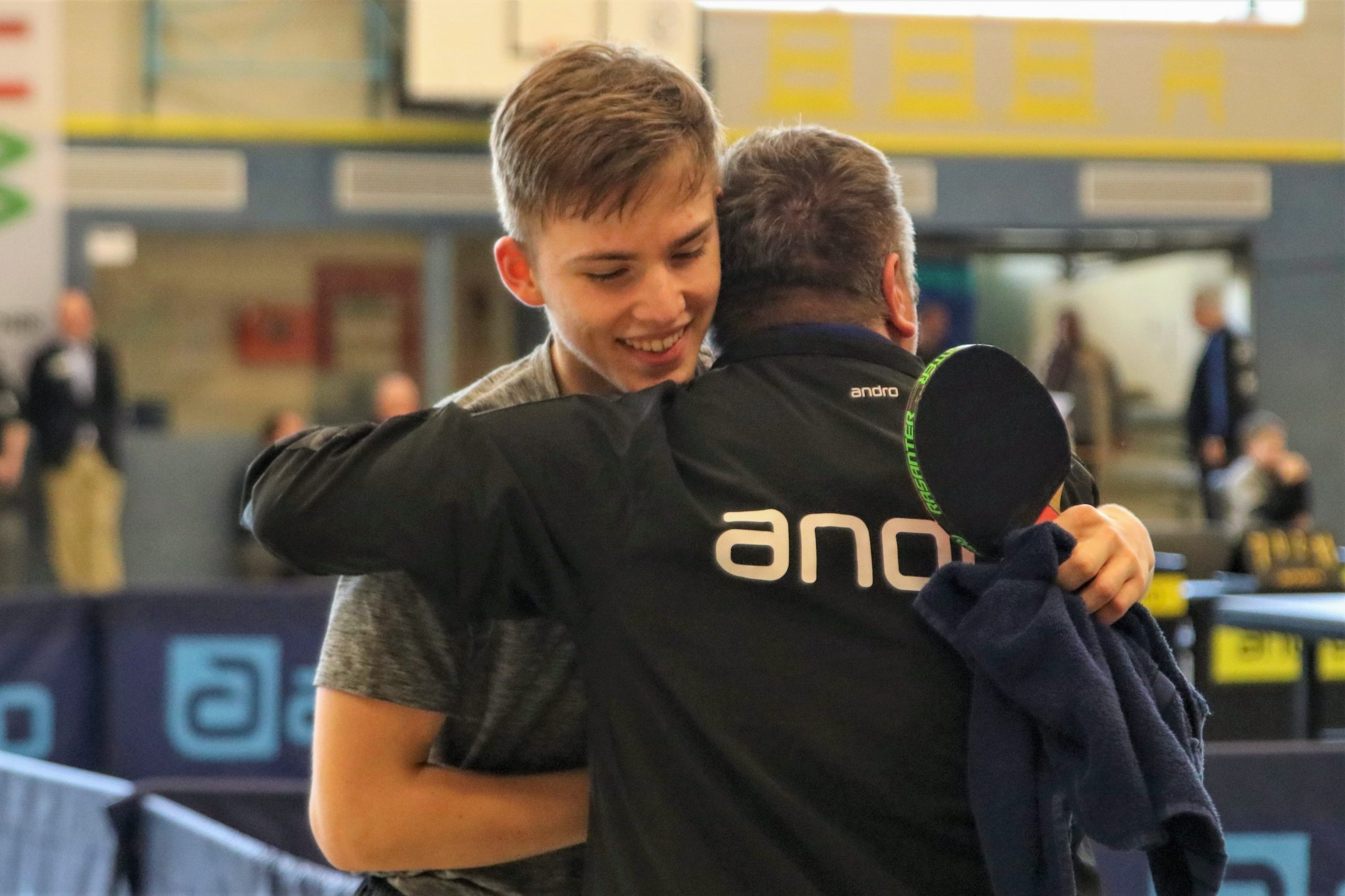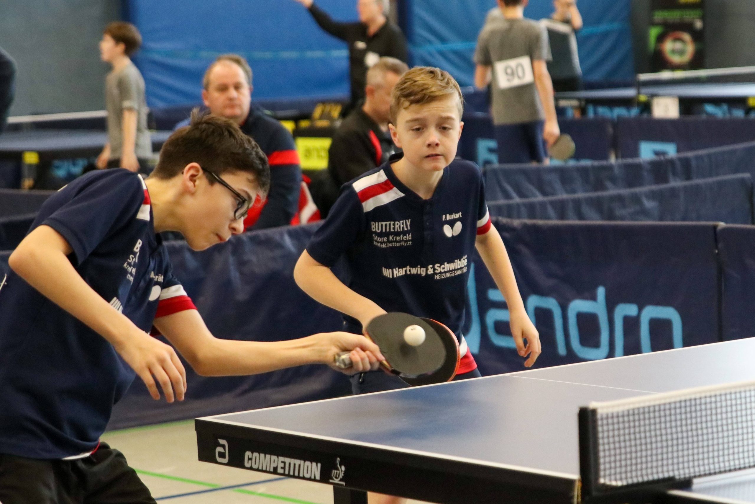 Bei den Jungen sah dieses wieder anders aus, hier trafen die an Position eins gesetzten Wim und Friedrich mit Jamal Oudriss und Tobias Sältzer (TV Refrath) auf die Zweiten der Setzliste. In einem ausgeglichenen Spiel musste hier der fünfte Satz die Entscheidung bringen, indem sich Wim und Friedrich etwas absetzen und am Ende deutlich mit 11:5 gewannen.
