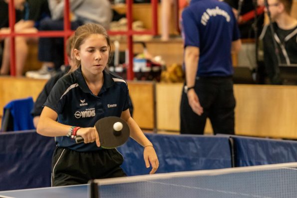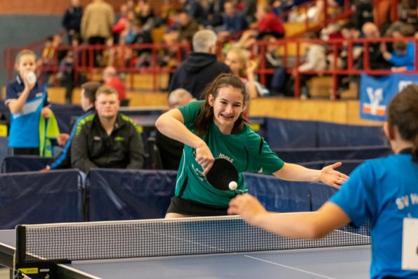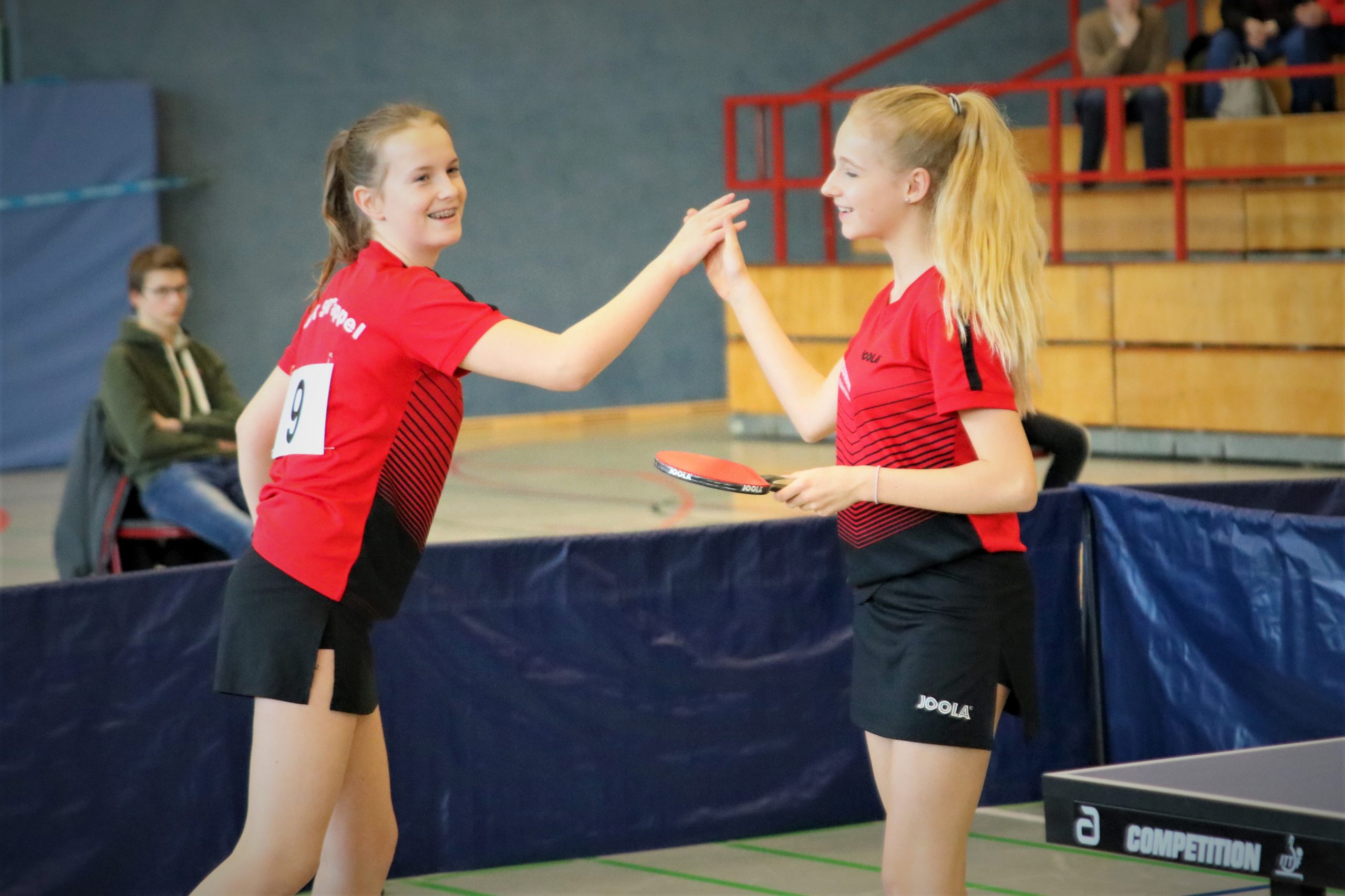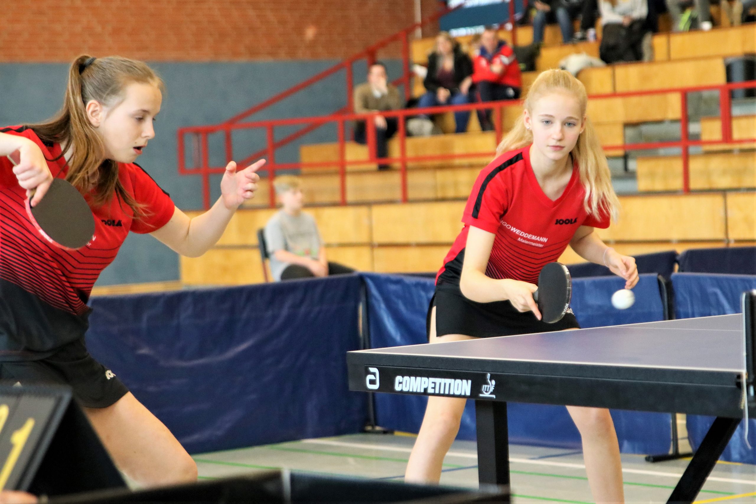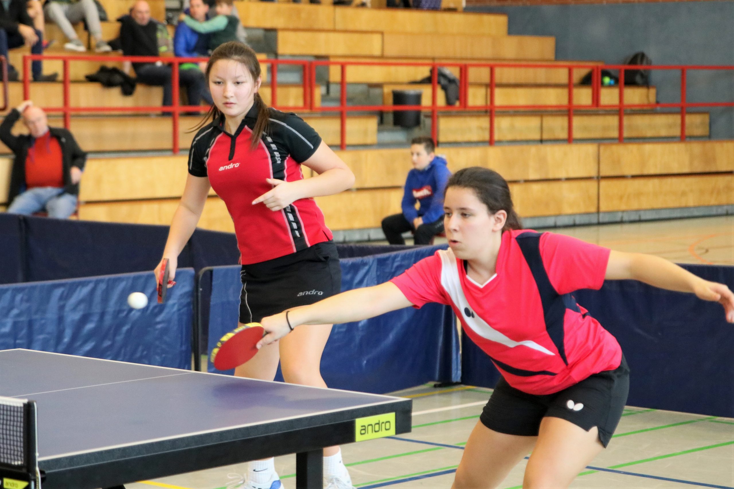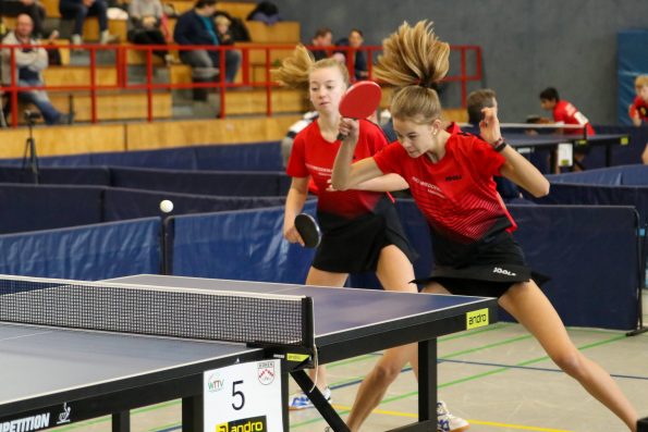 Im Mädchen Doppel gab es dann eine echte große Überraschung, Kathrina Grüß und Annika Schlesinger (SC Fortuna Bonn/SSV Bornheim) schafften es als ungesetzte Paarung ins Finale. Hier mussten sie sich allerdings deutlich mit 0:3 Madeea und Jana geschlagen geben.