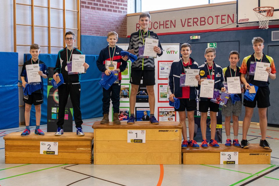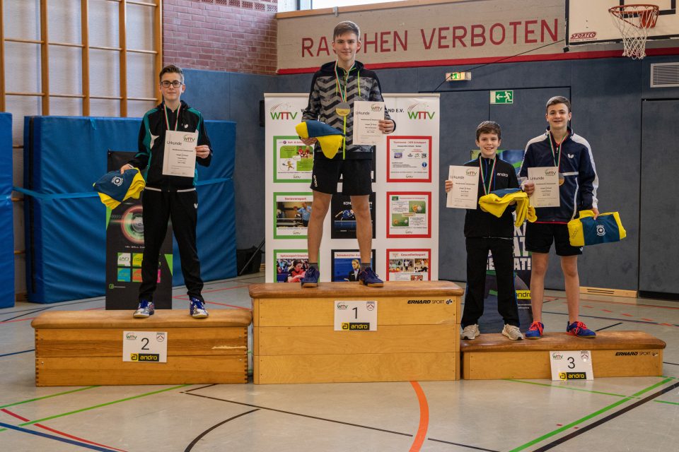 Sehr erfreulich war, dass die jungen Spieler, die mindestens noch ein Jahr in dieser Konkurrenz spielen können, wie Emilo Schulz (TTC Lövenich), Friedrich Kühn von Burgsdorff (Post SV Gütersloh), Adrian Gossow (TTG Vogelsang) und László Mohácsy (Borussia Düsseldorf) und Noah Hersel (1.FC Köln), die sogar auf dem Treppchen landeten, sehr gute Leistungen zeigten.