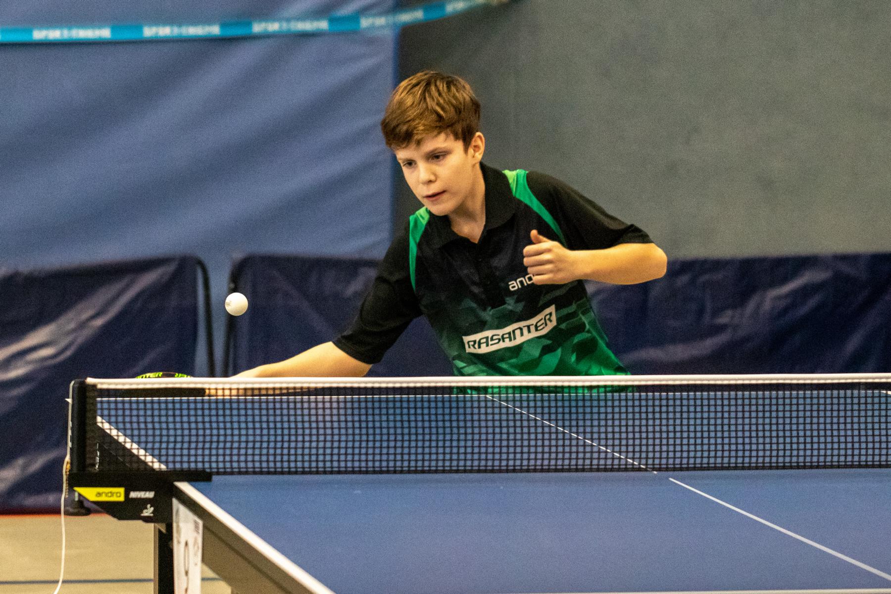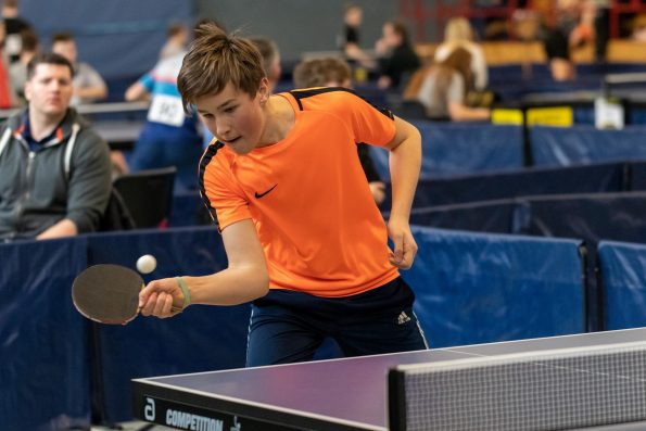 Auch bei den Jungen kam es zum erwarteten Finale zwischen Nationalspieler Tobias Sältzer und Wim Verdonschot. Beide gaben in der Ko-Runde auf dem Weg ins Endspiel lediglich einen Satz ab und waren an diesem Wochenende eindeutig die besten Spieler. Vor dem Spiel galt Tobias als Favorit, aber Wim legte im Finale los „wie die Feierwehr“, überrannte Tobias förmlich und holte sich die ersten beiden Sätze mit 11:8 und 11:6. Satz drei hätte schon die Entscheidung bringen können, aber Tobias rettete sich mit einem 12:10 in den vierten Satz. Hier machte Wim dann den Sack zu und holte sich mit 11:8 seinen ersten Westdeutschen Einzeltitel.