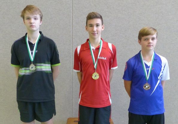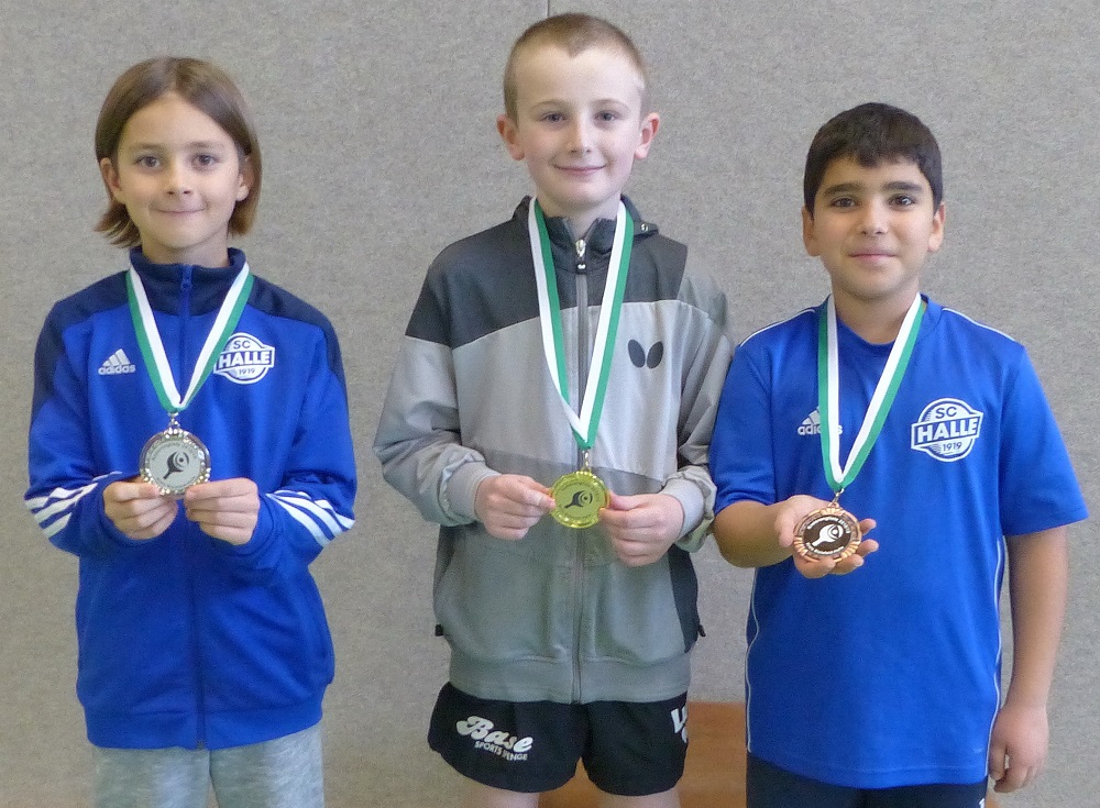 von links: 2. Platz: Lennox Menges (SC Halle), 1. Platz: Luca Gerstmayr (SC Halle), 3. Platz: Toprak-Efe Akyürek (SC Halle) – Foto: Siegbert Runde