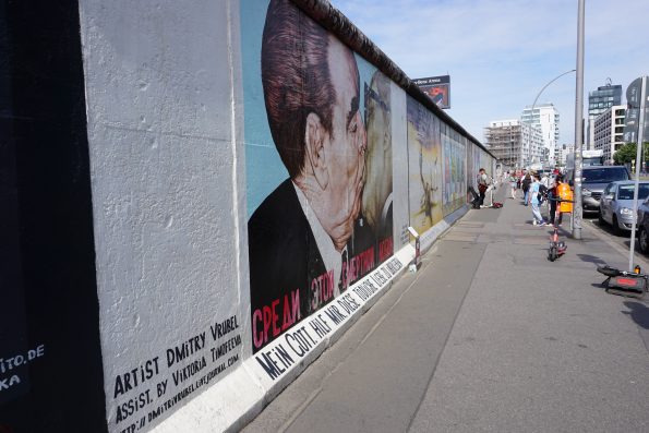 Am nächsten Morgen, nach einem guten Frühstück, startete die Gruppe um kurz nach 9 Uhr vom Hotel. Dieser Tag stand vor allem unter dem Eindruck und dem Thema der deutschen Teilung und der Berliner Mauer. Erste Station war die East Side Gallery. Dies ist das längste noch erhaltene Teilstück der Berliner Mauer und ist vielen sicherlich durch die vielen Bilder bekannt, welche dort nach dem Mauerfall von zahlreichen internationalen Künstlerinnen und Künstlern gemalt wurden. Nach einer rund einstündigen Führung zur Entstehung und Geschichte der East Side Gallery ging es für die Gruppe weiter in Richtung Bernauer Straße, wo nicht nur das zweitlängste Teilstück der Mauer, sondern teils die komplette Grenzanlage erhalten geblieben ist. Auch dort ließen sich die Teilnehmenden in einer Führung über den Aufbau der Grenzanlagen zwischen BRD und DDR (insbesondere der Mauer in Berlin) informieren.