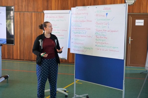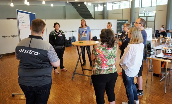 Nachdem sich alle Teilnehmenden in den unterschiedlichen Gruppen etwas näher kennengelernt hatten, ging es in die Workshopphase. In dieser konnten die Anwesenden je nach Interesse jeweils aus zwei Themenkomplexen wählen. Zur Verfügung standen die Inhalte „Sport“ & „Angebote“, „Kommunikation“ & „Engagementförderung“ sowie „Junges Ehrenamt“ & „Die Vereinsjugend“. In einer jeweils eineinhalbstündige Workshopphase lag der Fokus, nach einem kurzen Input zum Thema durch den jeweiligen Referierenden besonders auf der gemeinsamen Entwicklung von Ideen und Impulsen für die Zukunft.