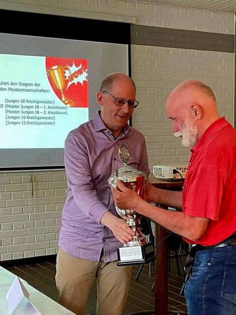 Auf dem Kreisjugendtag 2022 wurde der Günther-Stocks-Pokal für besondere Verdienste um den Nachwuchs im Tischtenniskreis Krefeld an Horst Reinhart (TTF Rhenania Königshof) verliehen.
