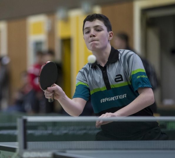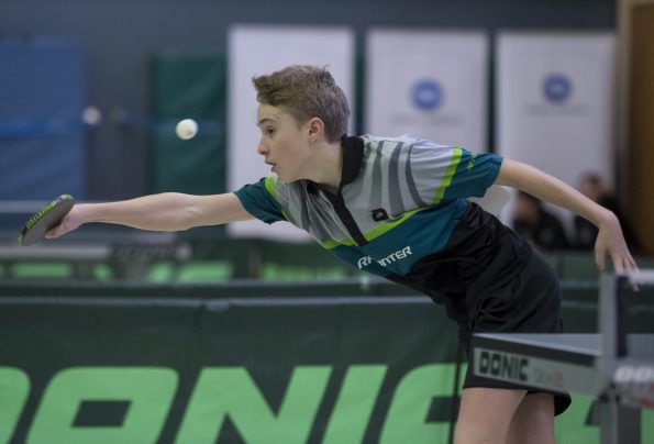Tom Mykietyn (TG Neuss) spielte ein wirklich gutes Turnier und verpasste das Podium bei einer Bilanz von 6:3-Spielen nur aufgrund des schlechteren Satzverhältnisses. Am ersten Wettkampftag musste sich Tom lediglich dem früheren WTTV-Spieler Kirill Fadeev (HETTV) und Hannes Hörmann (BYTTV) mit 1:3 geschlagen geben. Am Sonntag hatte Tom den späteren Sieger Kay Stumper sogar am Rande einer Niederlage, Tom führte gegen den Baden-Württemberger bereits mit 2:0, musste dann aber den Satzausgleich hinnehmen. Im fünften Satz konnte Tom noch Matchbälle abwehren, verlor diesen aber mit 9:11. Doch auch nach dieser knappen Niederlage fand Tom für das nächste entscheidende Spiel wieder die richtige Einstellung und besiegte den Abwehrspieler Dominik Jonak, der am Ende den zweiten Platz belegte, in einem für die Zuschauer sehr spannenden Match mit tollen Ballwechseln nach 0:2 Satzrückstand und einem 16:14 im dritten Satz mit 3:2. „Für Tom tut es mir etwas Leid, mit nur drei Niederlagen bei so einem ausgeglichenen Feld, kann man so ein Turnier auch mal gewinnen. Das am Ende aufgrund des Satzverhältnisses nur Rang fünf heraus gekommen ist, ist sehr schade! Tom hat trotzdem eine tolle Leistung gezeigt“, so WTTV-Cheftrainer Stephan Schulte-Kellinghaus bei der Abschlussbesprechung.