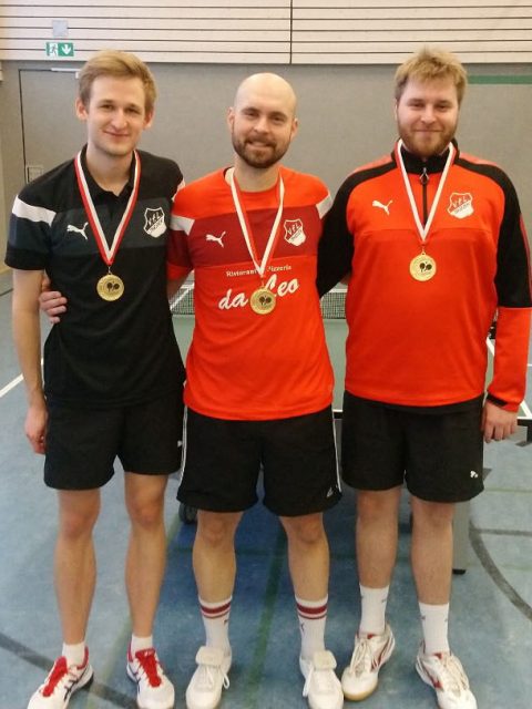Siegerfoto vom Herren Kreispokal im Dezember 2018 – Kreispokalsieger VfL Theesen vlnr: Matthis Böttcher, Sven Friedrichs, Bastian Mattick – Foto: Marc Antons
