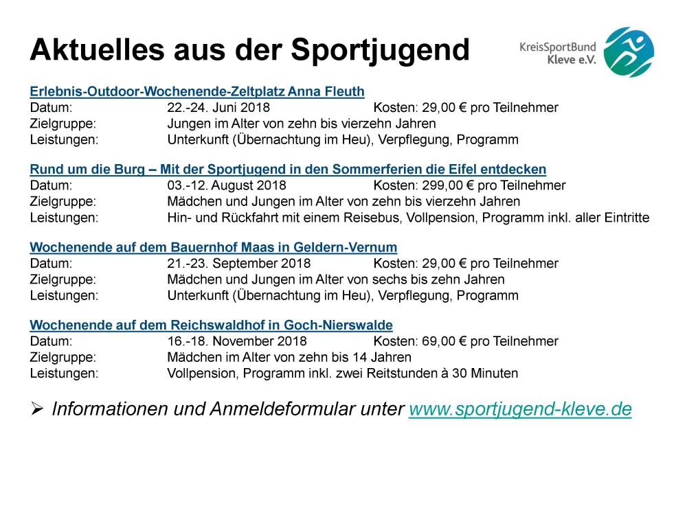 Der Kreis Niederrhein hatte den KSB Kleve dazu eingeladen, anlässlich der Kreisversammlung am 6.Juni 2018 in Xanten die Chancen und Möglichkeiten im Rahmen einer Zusammenarbeit zu präsentieren. Dazu konnte Referent Malte Seidl begrüßt werden, der mit Hilfe eines interessanten Vortrages die Mitgliedsvereine zu informieren.