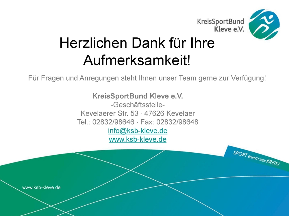 Ab sofort ist der Kreissportbund Kleve in seinen neuen Räumlichkeiten zu erreichen: