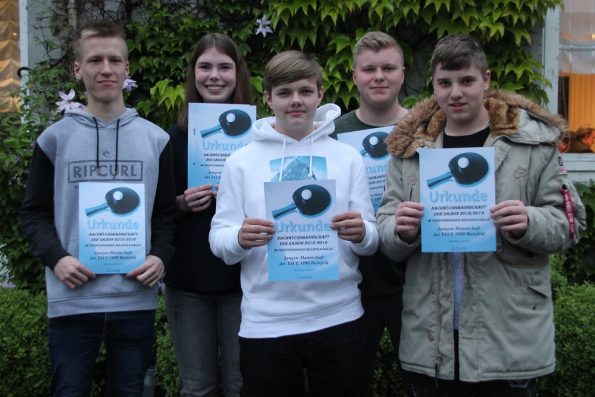 Die Kreis-Jugendversammlung des Tischtenniskreises Bielefeld/Halle fand am Montag, den 20.05.2019, bei Oberwittler in Heepen statt. Der Kreisjugendwart Joachim Middendorf begrüßte die anwesenden Vereinsvertreter und den komplett erschienenen Jugendausschuss sowie die zu Ehrenden und einige weitere Kreisvorstandsmitglieder zu der Versammlung. Die Urkunden für die Meister und Staffelsieger wurden vom Jugendwart bzw. von den Staffelleitern den Vereinsvertretern übergeben. Die Spieler der Nachwuchsmannschaft der Saison 2018/2019 und der Nachwuchsspieler/in der Saison erhielten ihre Urkunden persönlich.