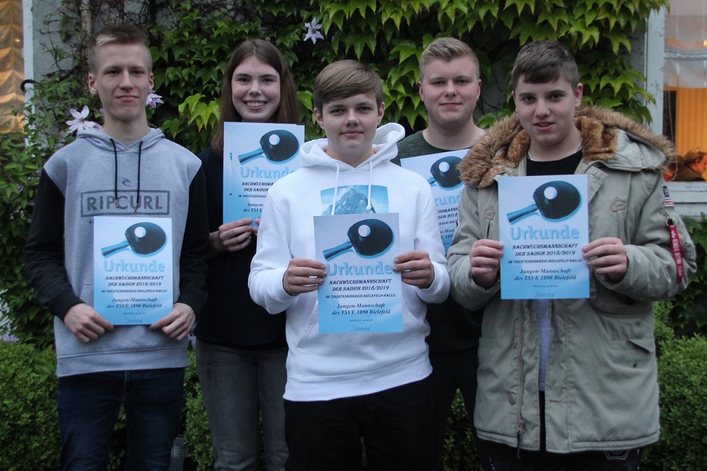 Nachwuchsmannschaft Saison 2018/2019 – 1. Jugendmannschaft des TSVE 1890 Bielefeld Vlnr:, Jelte Schrader, Julia Fischer, Niclas Fischer, Alessandro Trifiro, Robin Schwarz