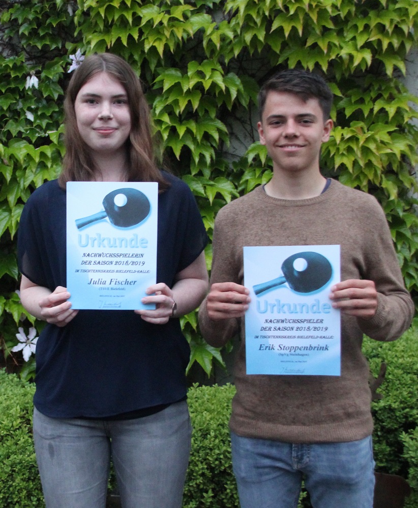 Nachwuchsspieler/-in der Saison: Julia Fischer (TSVE 1890 Bielefeld) Erik Stoppenbrink (Spvg Steinhagen) – Foto: Ingrid Müller