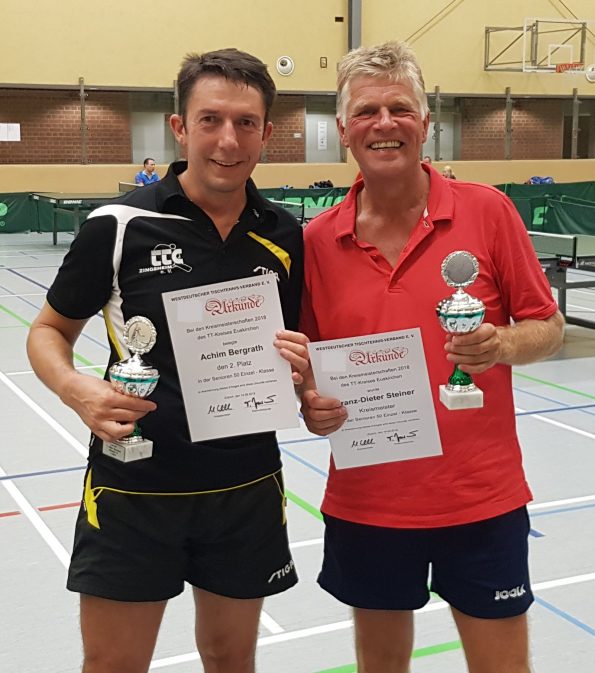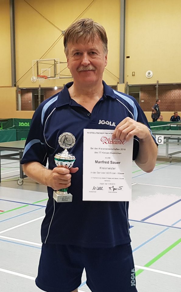 Die weiteren Einzelsieger in den Altersklassen heißen Franz-Dieter Steiner (SC Friesheim) bei den Senioren 50, Manfred Sauer (SC Friesheim) bei den Senioren 60, Reinhard Oleyniczak bei den Senioren 70 und Helmut Röcker (TTV Lommersum) in der Senioren-B-Klasse.