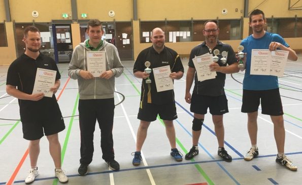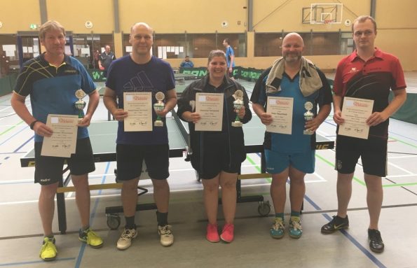 In der Herren-B-Klasse mit 14 Startern siegte Daniel Wich vom TVE Bad Münstereifel vor Thorsten Wesolowska vom TTV Lommersum. Der Doppel-Titel ging an Daniel Wich und Tom Kreuzer (TVE Bad Münstereifel / TV Kall).