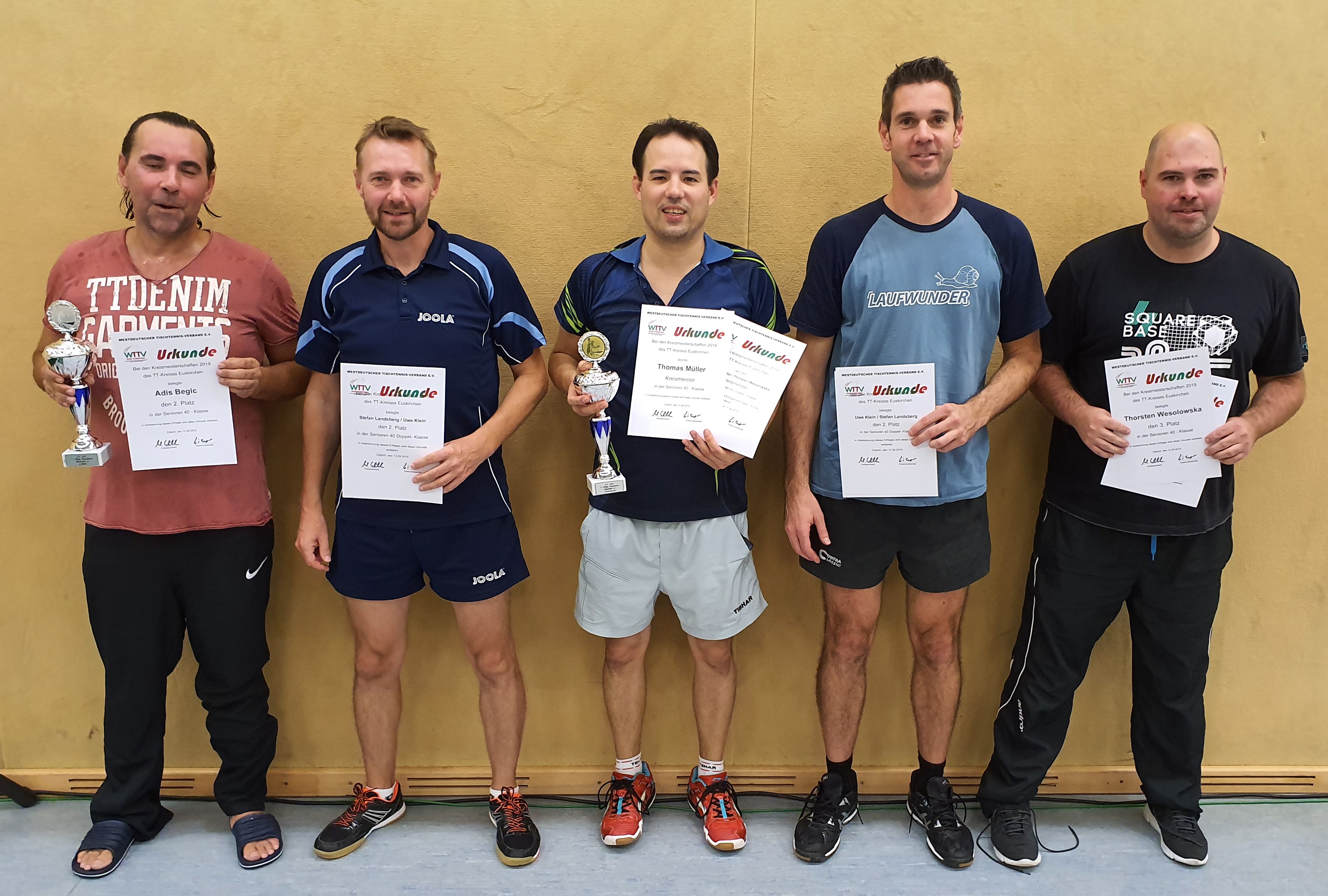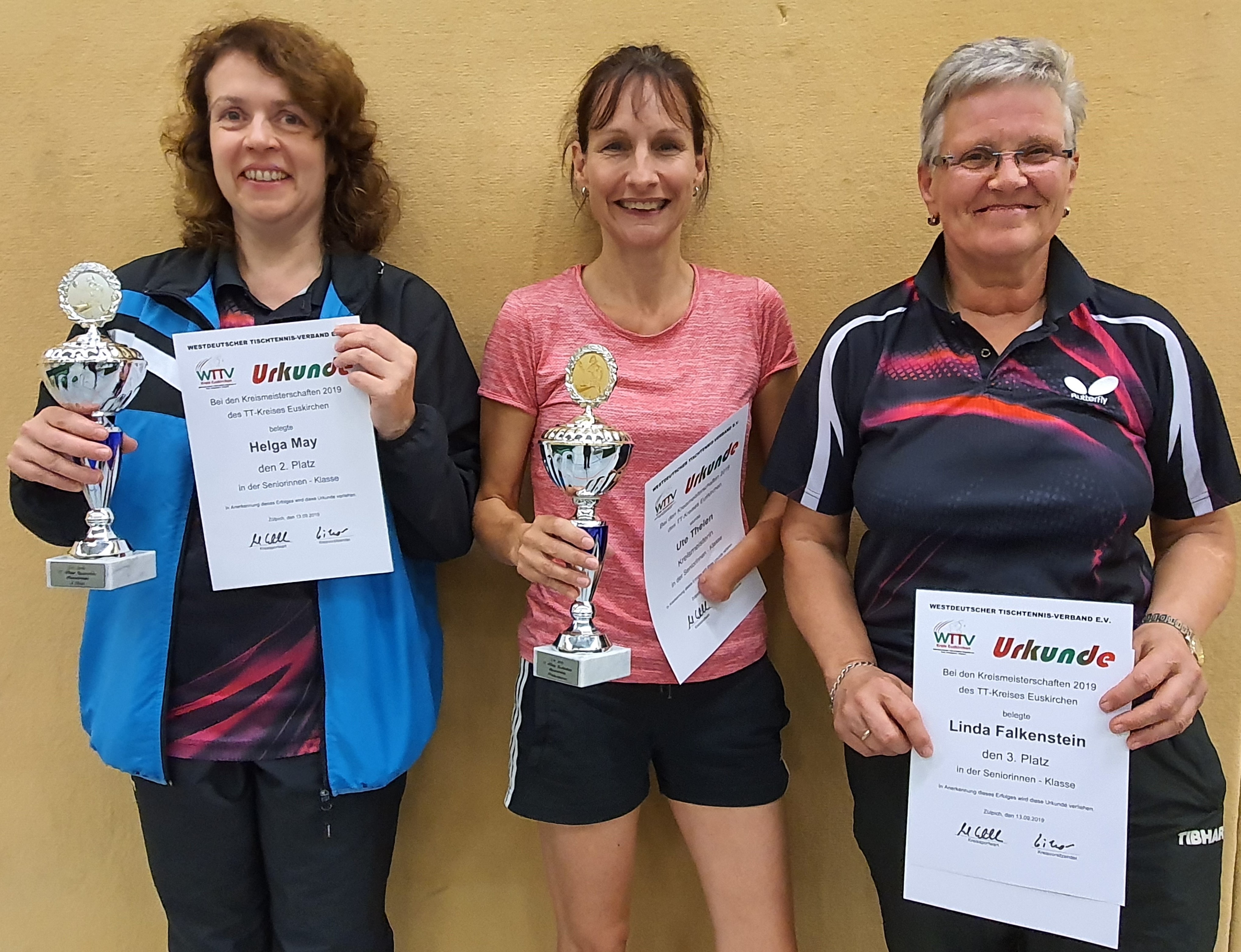 Bei den Seniorinnen wurde nur eine Altersklasse ausgetragen. Hier gewann Ute Thelen vom TTV Lommersum vor Helga May vom DJK Herhahn/Morsbach. In der Senioren-40-Klasse siegte Thomas Müller vom TTC Lechenich vor Adis Begic vom BC Bliesheim. Das Doppel gewannen Thomas Müller und Thorsten Wesolowska (TTC Lechenich/TTV Lommersum).