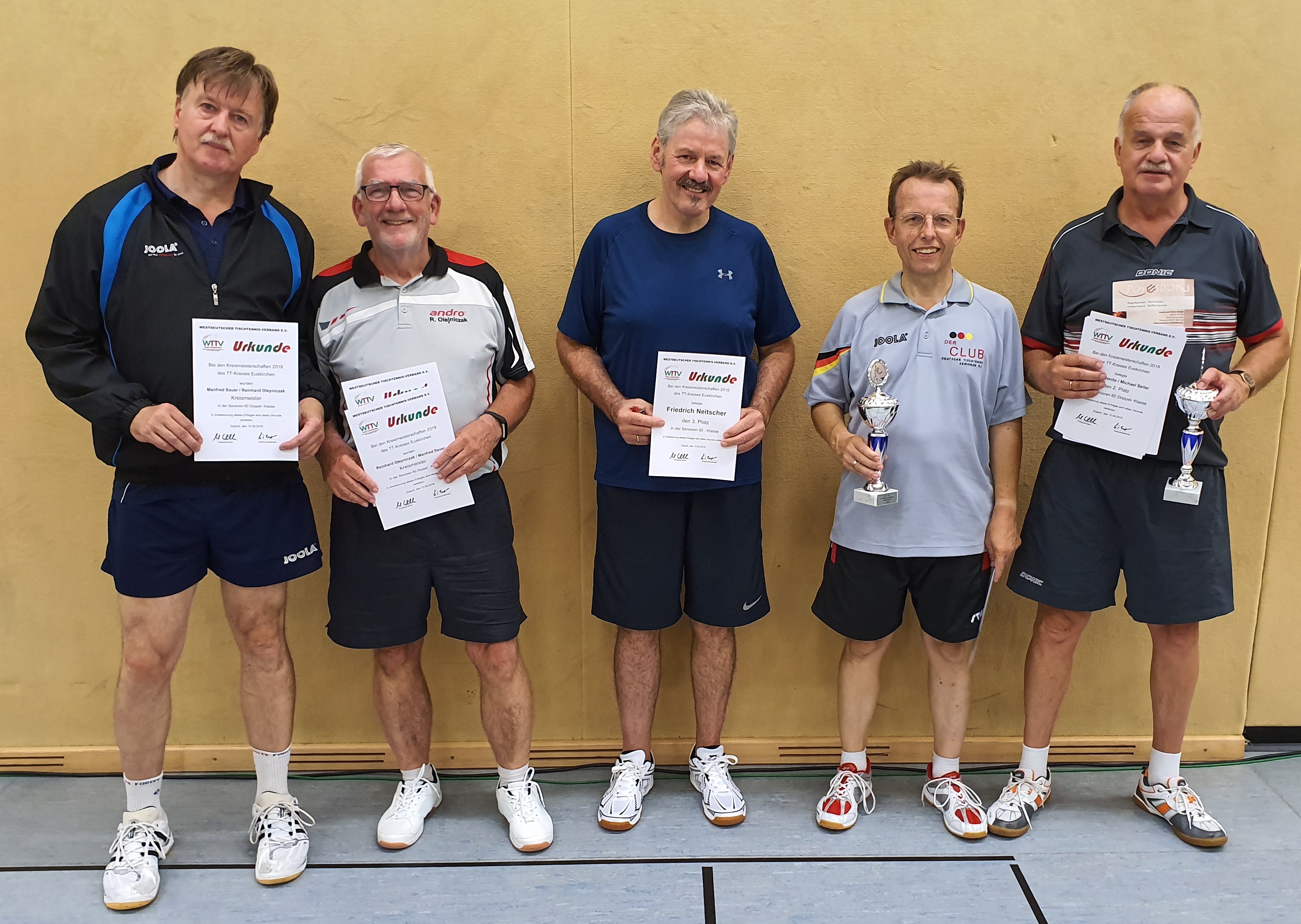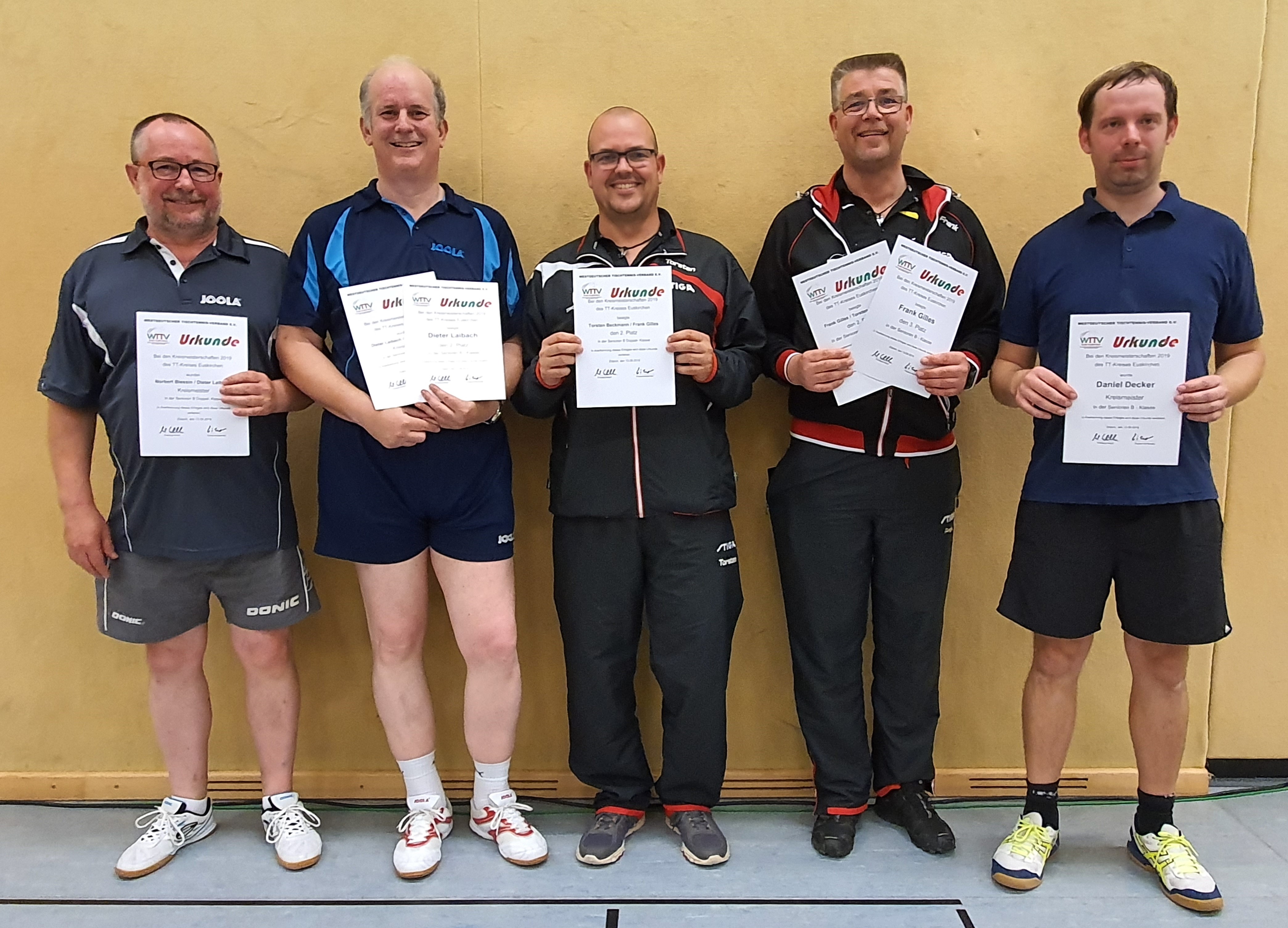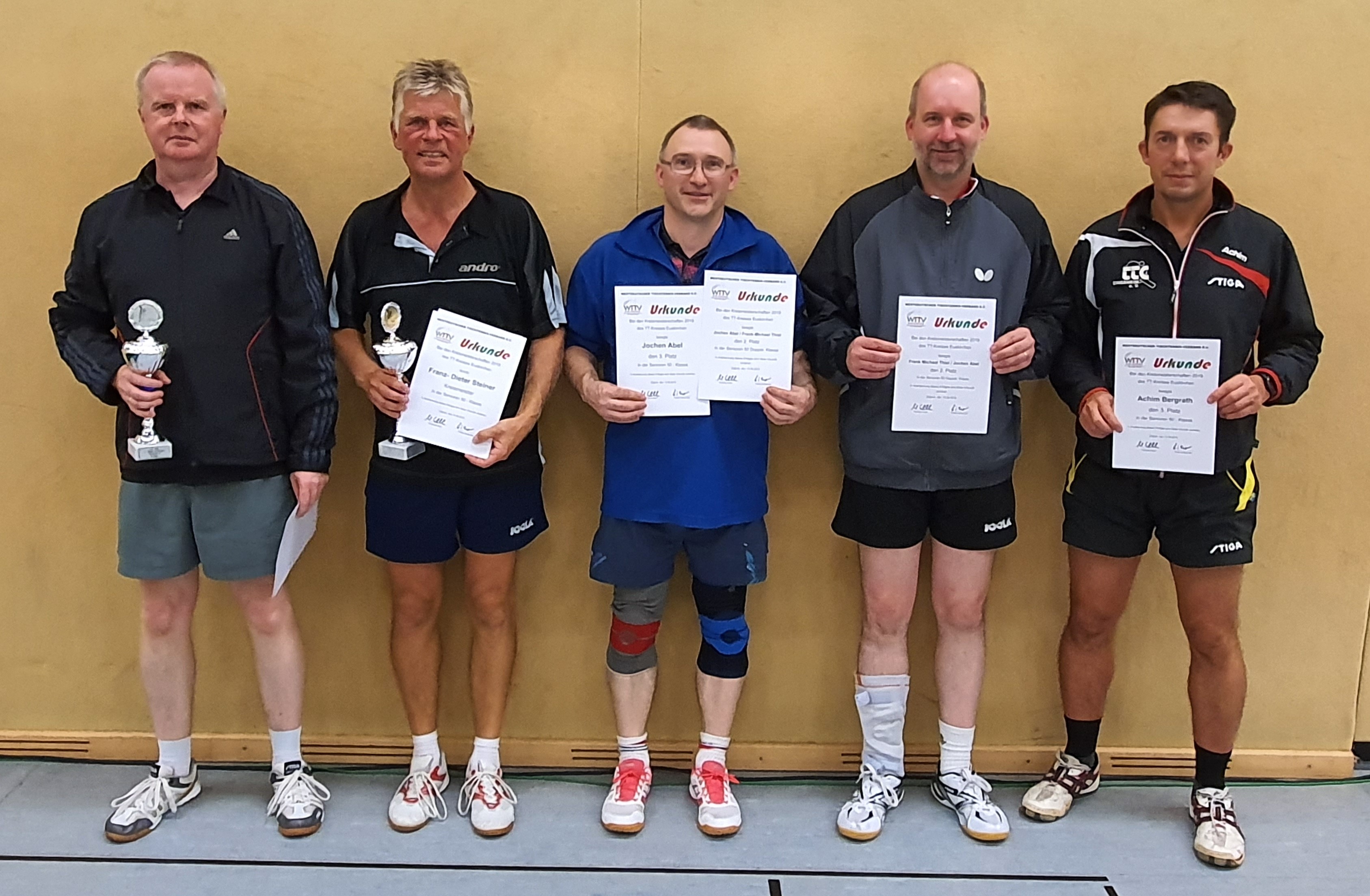 Bei den Senioren 50 setzte sich Franz-Dieter Steiner vom SC Friesheim gegen seinen Vereinskollegen Karl-Josef Stuwe durch, die sich zusammen auch den Titel im Doppel sicherten. Bei den Senioren 60 und älter gab es auch ein vereinsinternes Finale, das Hans Schmitz gegen Michael Seiler (TTC Vernich) gewann. Im Doppel siegten Reinhard Oleyniczak und Manfred Sauer (BC Bliesheim/SC Friesheim). Die Senioren-B-Klasse gewann Daniel Decker vom VfL Kommern vor Dieter Laibach vom TTC Lechenich, im Doppel siegten Norbert Blessin und Dieter Laibach (TTV Lommersum/TTC Lechenich).