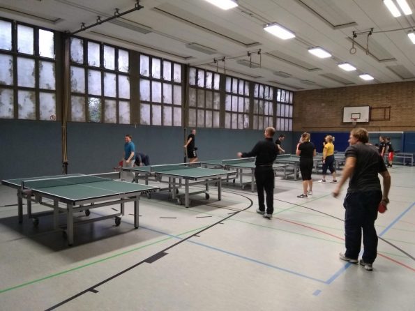 Da sich benachbarte Schulen gemeinsam dieser Fortbildung angeschlossen haben, konnte Referent Norbert Weyers stolze 18 motivierte Sportlehrer in der Halle begrüßen. Die Fortbildung beinhaltete eine (schulgemäße) Schulung in den Schlagtechniken des Tischtennissports sowie zahlreiche Spiel- und Wettkampfformen.