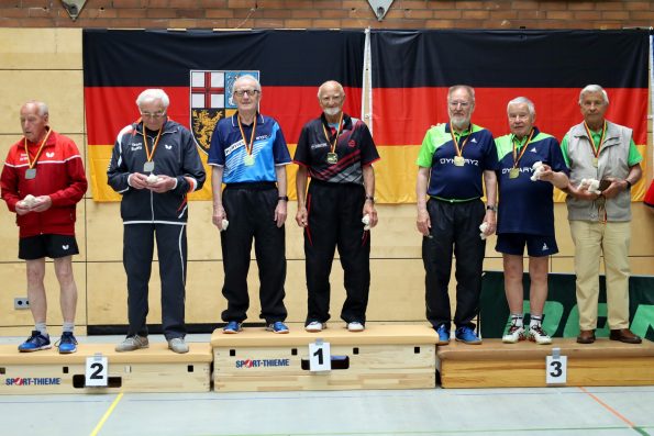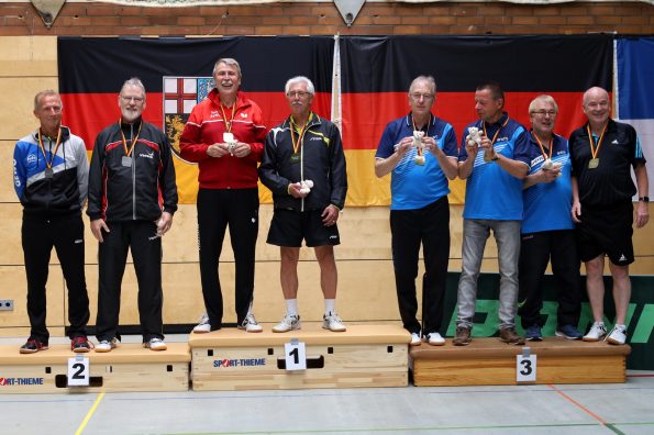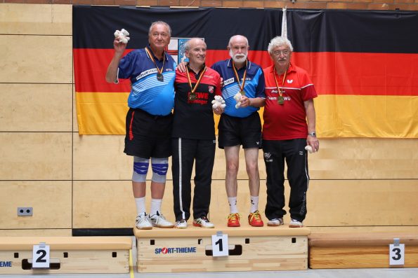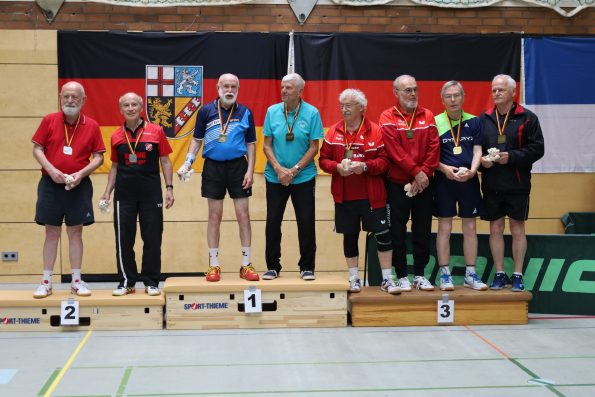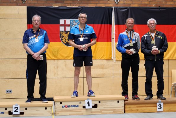 Bei den Herren konnte Konrad Steinkämper (Sen-85) mit drei Goldmedaillen glänzen und dies nach überstandener schwerer Krankheit. Weitere Goldmedaillen gab es noch im Einzel für Uwe Peters (Sen-40), Jürgen Reuland (Sen-75) und Annemarie Falkowski (Sen-70).