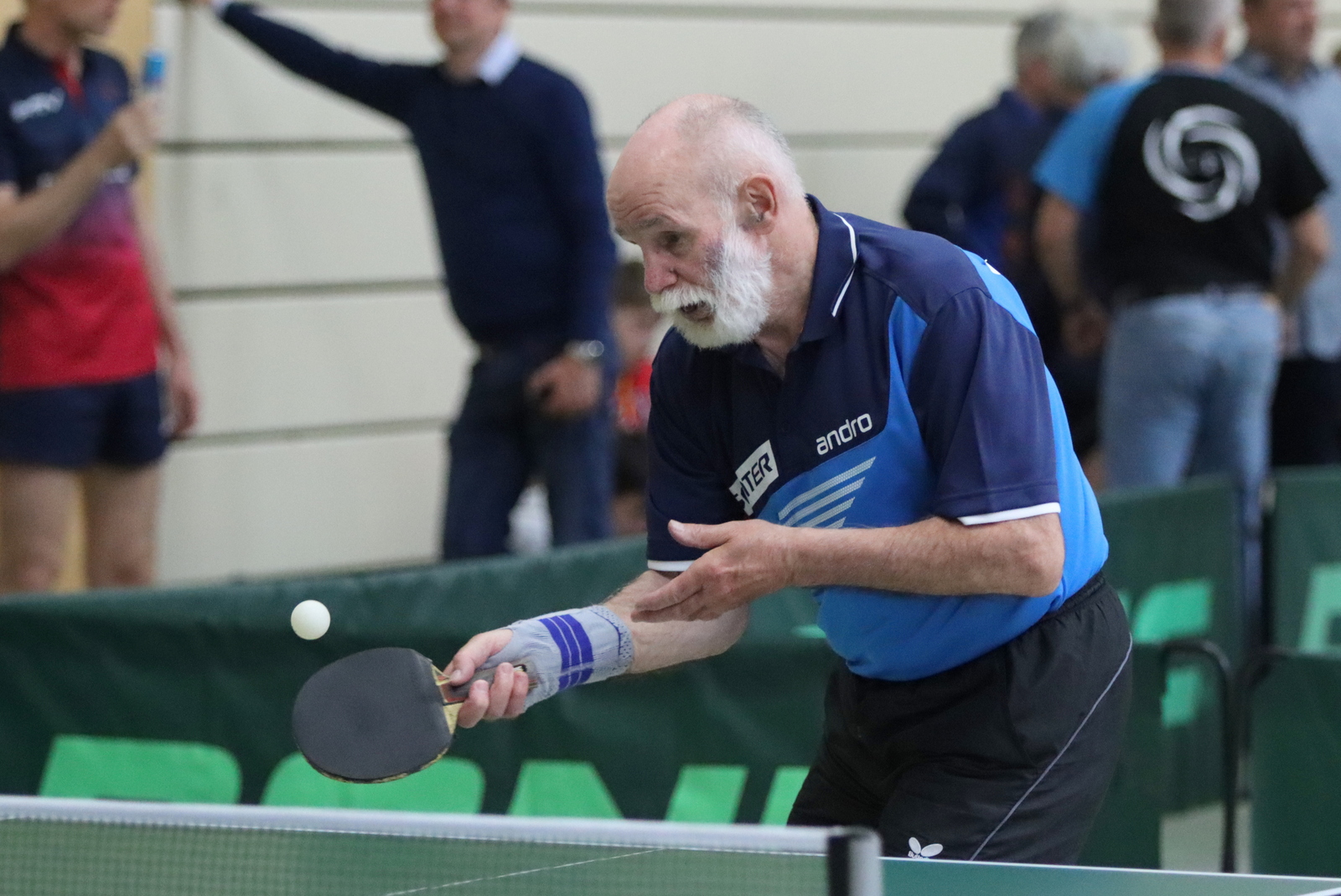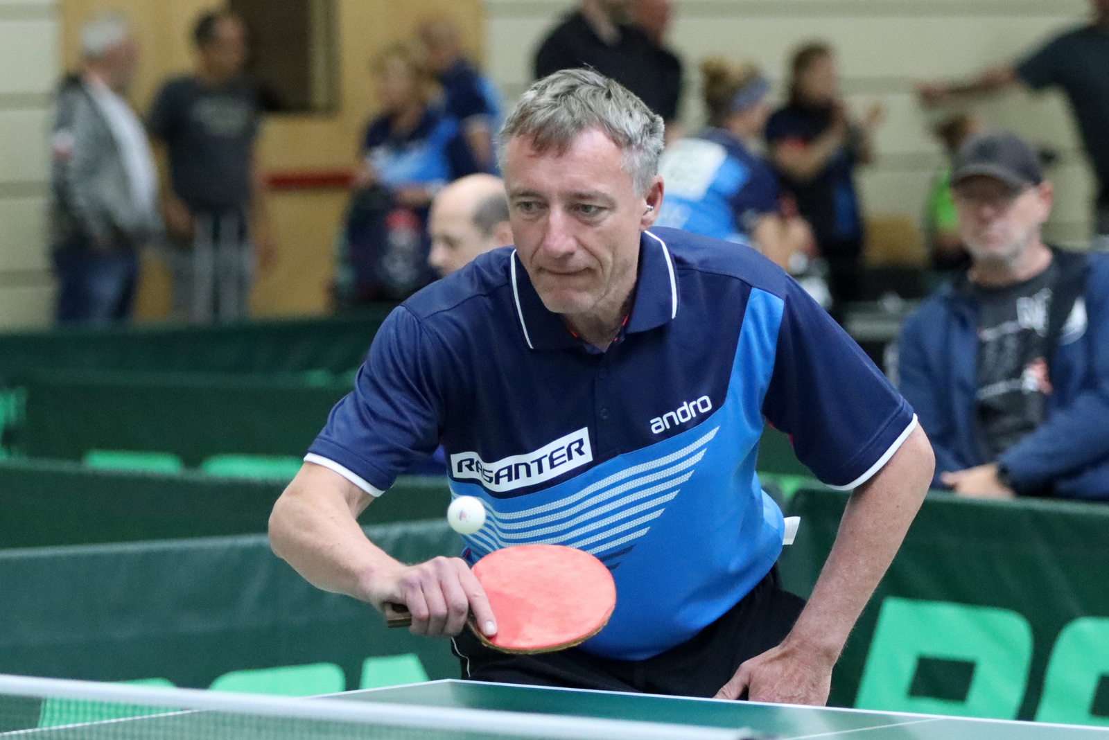 Für großartige Atmosphäre sorgten spektakuläre Auftritte von Wolfgang Gerth und Joachim Beumers (Sen-50) in Einzel und Doppel und dazu das Linkshänder-Doppel Maurice Mann/Guido Schmitz (Sen-45).