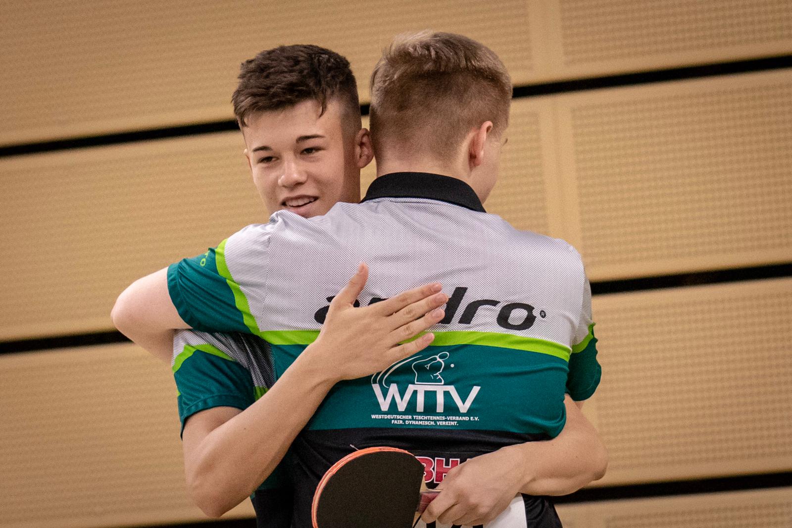 Mit einer Medaille im Gepäck kehrte die 18köpfige WTTV-Delegation von den Nationalen Deutschen Jugendmeisterschaften in Wiesbaden zurück. Das Doppel mit Tom Mykietyn und Lukas Bosbach gewinnen die Silbermedaille. Im Einzel erreichten Tom Mykietyn und Leonie Berger das Viertelfinale. Dort mussten beide gegen die Topgesetzten und späteren Deutschen Meister Kay Stumper (Baden-Württemberg) und Sophia Klee (Hessen) gratulieren.