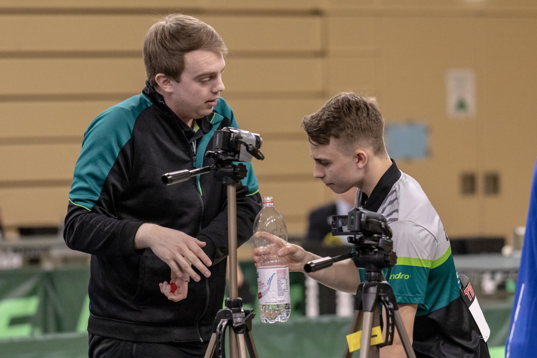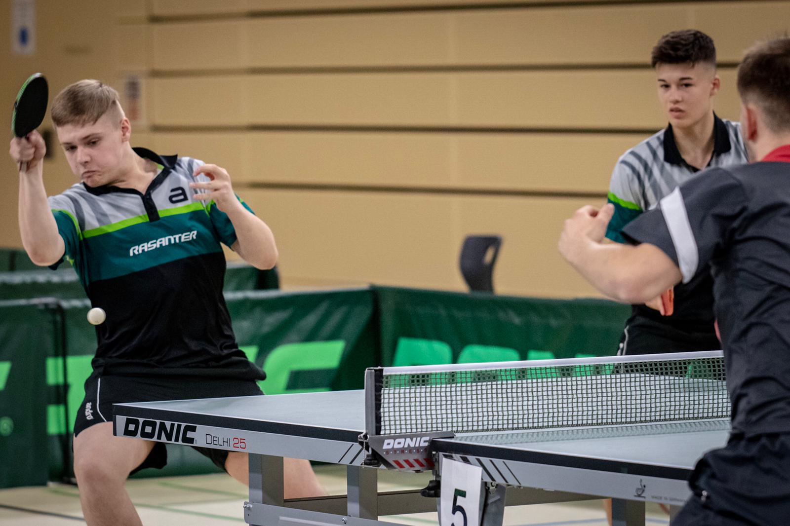 Tom und Lukas, die auch schon beim Deutschland Pokal zusammeln Doppel gespielt haben, fanden im Laufe des Turniers immer besser zusammen und konnten sich von Runde zu Runde steigern. Nachdem sie zu Beginn des Turnier im Achtel- und Viertelfinale zwar deutlich gegen Llorca/Klute (HTTV) und Senkbeil/Kohne (TTVN) gewinnen konnten, bedurfte es schon einer Leistungssteigerung, um im Halbfinale das eingespielte bayrische Duo Hörmann/Rinderer zu besiegen. Und dies zeigten die Jungs auch. In einem hochklassigen und dramatischen Match, welches über die volle Distanz ging, gewannen sie am Ende mit 11:9 im Entscheidungssatz und zogen so ins Finale gegen Hennig/Tran (TTVBW) ein.