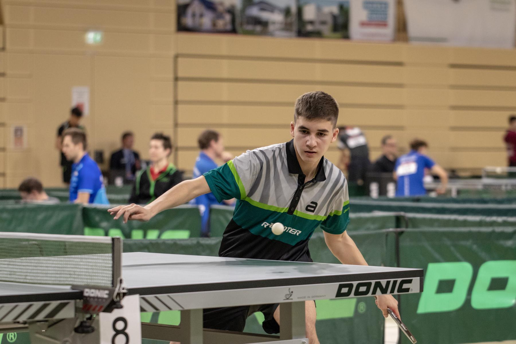 Bei den Jungen erreichten Tom Mykietyn, Rafael Schapiro und Tobias Slanina das KO-Feld. Tom ließ in der Gruppenphase nichts anbrennen, verlor keinen Satz und qualifizierte sich damit direkt für das Achtelfinale. Hier traf er auf Nico Longhino (BYTTV). Nach Startschwierigkeiten und verlorenem ersten Satz fand Tom zu seinem Spiel und erreichte das Viertelfinale. Hier wartete allerdings der an Position Eins gesetzte Kay Stumper (TTBW). Trotz großer Gegenwehr konnte Tom den Top-Favoriten nicht stürzen und unterlag mit 1:4. Altersbedingt war dies für Tom der letzte Auftritt bei einer Jugendmeisterschaft. Wir bedanken uns bei Tom für die Jugend-Jahre und wünschen ihm für seine weitere sportliche Zukunft alles Gute!
