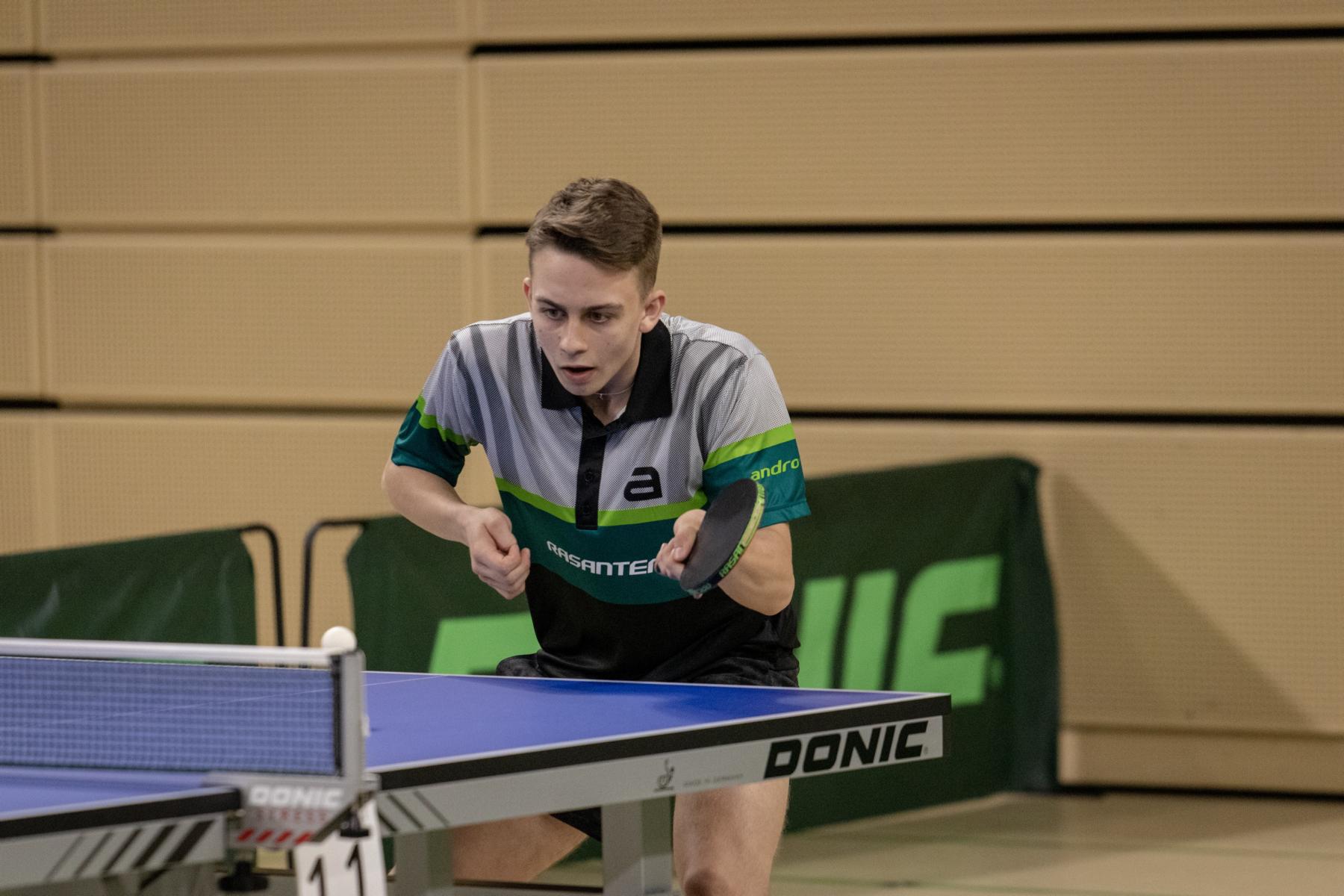 Etwas überraschend schied auch Lukas Bosbach in der Gruppenphase aus. Der Westdeutsche Meister fand an diesem Tag nicht zu seinem Spiel und verlor sowohl gegen Abwehrer Hintze (TTVN) als auch gegen Hörmann (BYTTV).