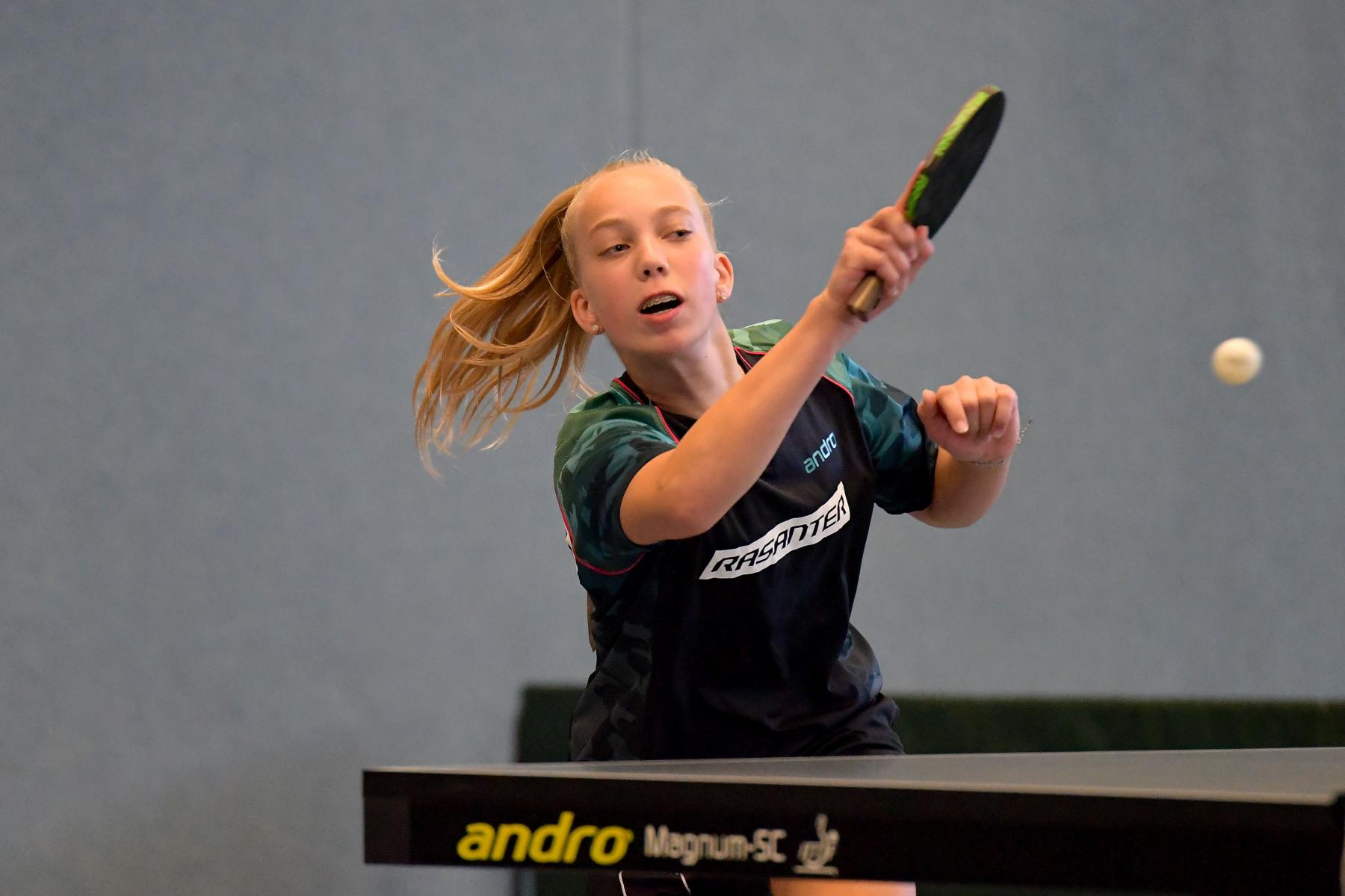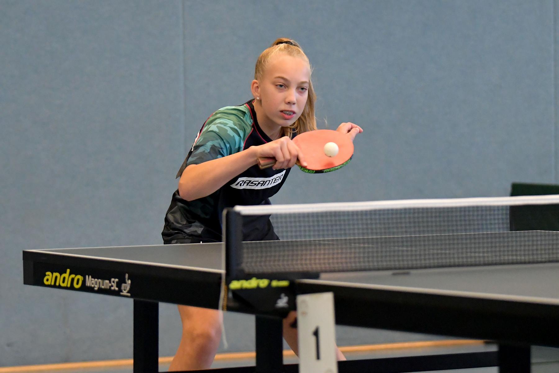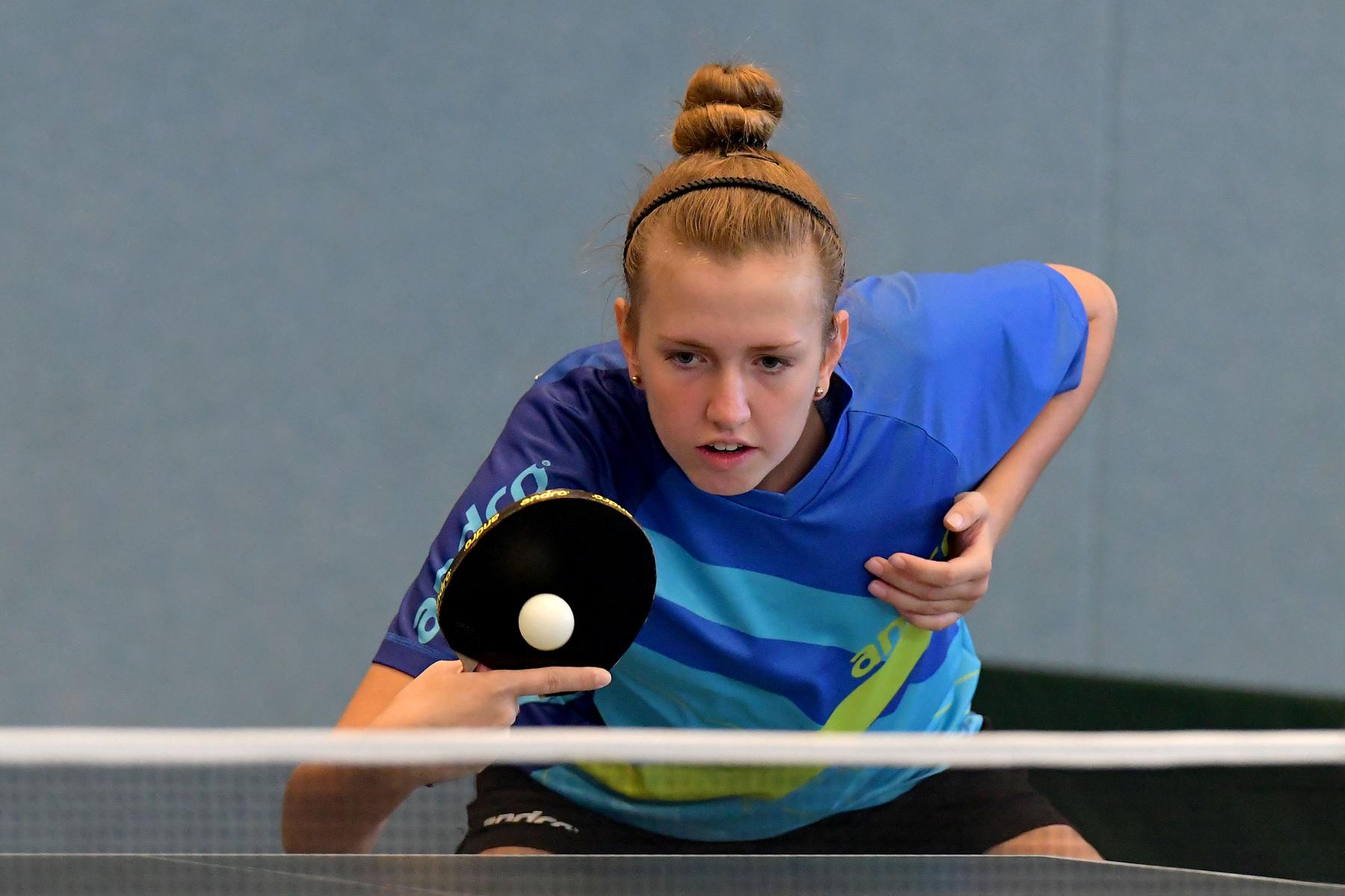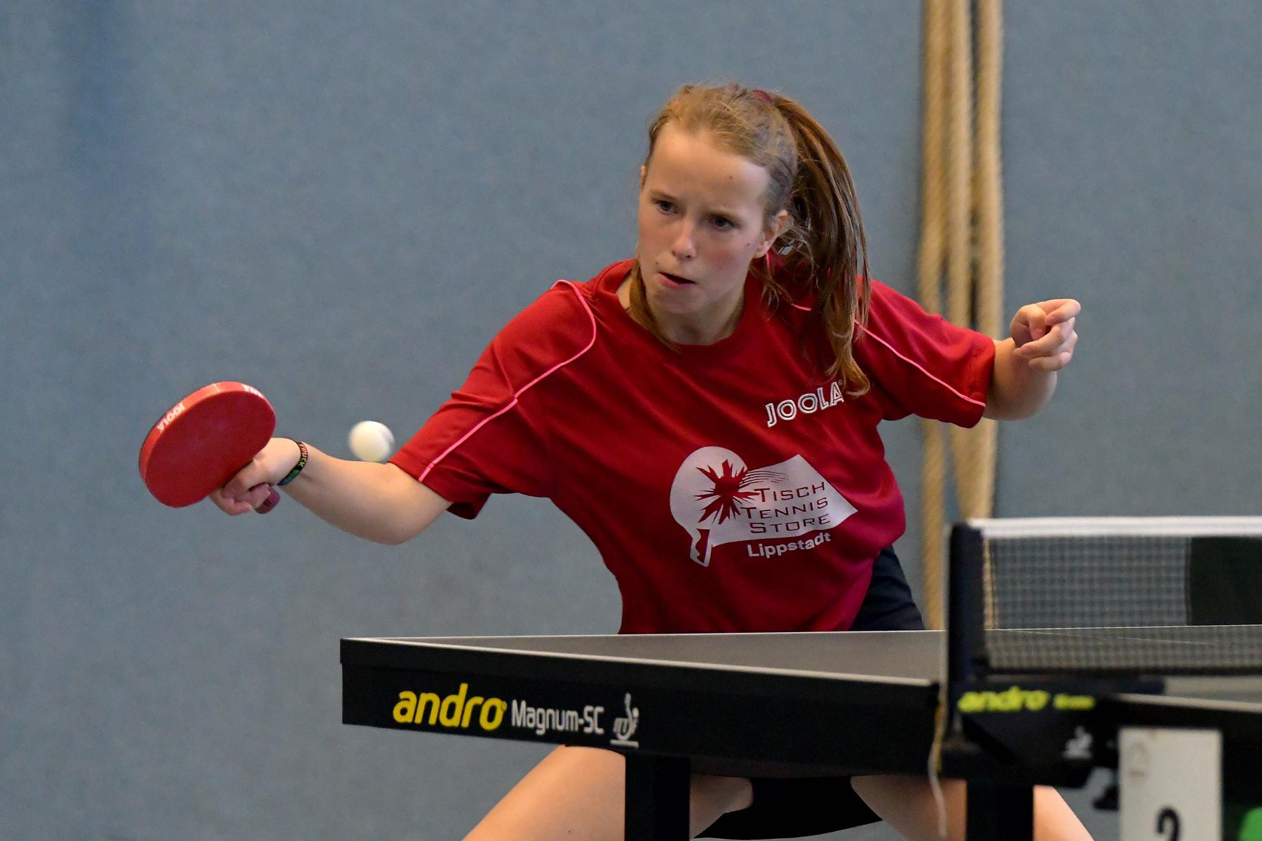 Bei den Schülerinnen konnte sich Hannah Pollmeier (TTV Hövelhof) vor ihrer Vereinskollegin Melinda Maiwald durchsetzen. Beide konnten damit die begehrten Tickets für das Bundesranglistenfinale Top 48 lösen. Direkt in der ersten Runde trafen sie aufeinander und zeigten eindrucksvoll, dass sie zu den Besten im Westen gehören. Mit 3:2 setzte sich nach einem spannenden und hochkarätigen Match Hannah durch. Dieser Sieg schenkte Hannah das notwendige Selbstvertrauen, um die nächsten Herausforderungen zu bestehen. Und diese ließen nicht lange auf sich warten. Michelle Wulff (DJK SR Cappel) sicherte sich mit 5:3 Spielen und dem besseren Satzverhältnis den dritten Platz vor Amelie Pucker (SV Bergheim). Jeweils vier Siege und vier Niederlagen standen zum Schluss für Samira Oudriss (TV Refrath) Annika Menns (Anrather TK) auf dem Turnierbogen und bedeuteten Platz fünf und sechs. Felina Busch (SC Fortuna Bonn) belegte mit 3:5 Spielen Platz sieben vor Luisa Düchting (TTG Langenich) und Katja Schütz (TSV Marienberghausen). Leider verletzte sich Medeea Grozav-Marcu (TuS Sundern) im Spiel gegen Felinda Busch so schwer, dass sie das Turnier abbrechen und sich in ärztliche Behandlung begeben musste. Auf diesem Wege wünschen wir ihr alles Gute und hoffen, dass sie bald wieder gesund ist.