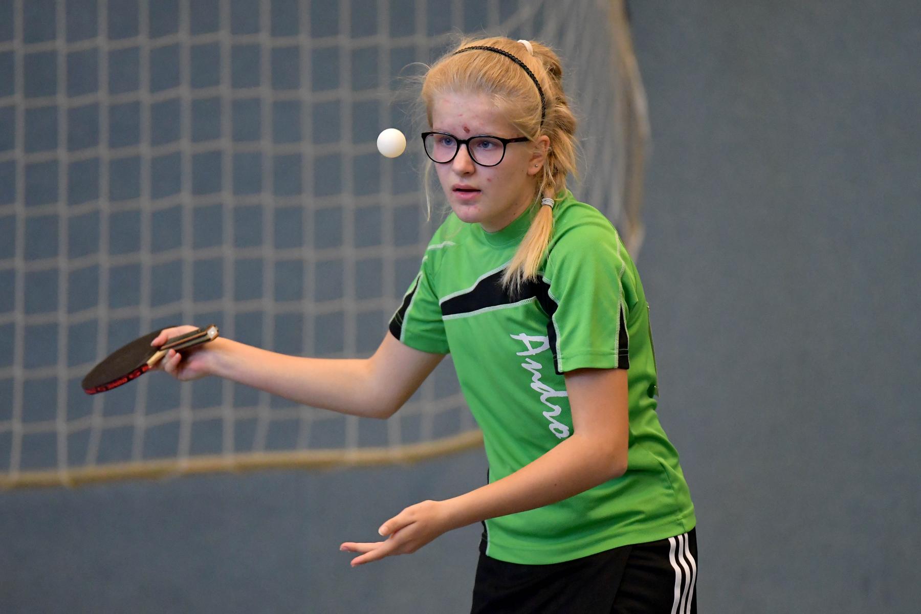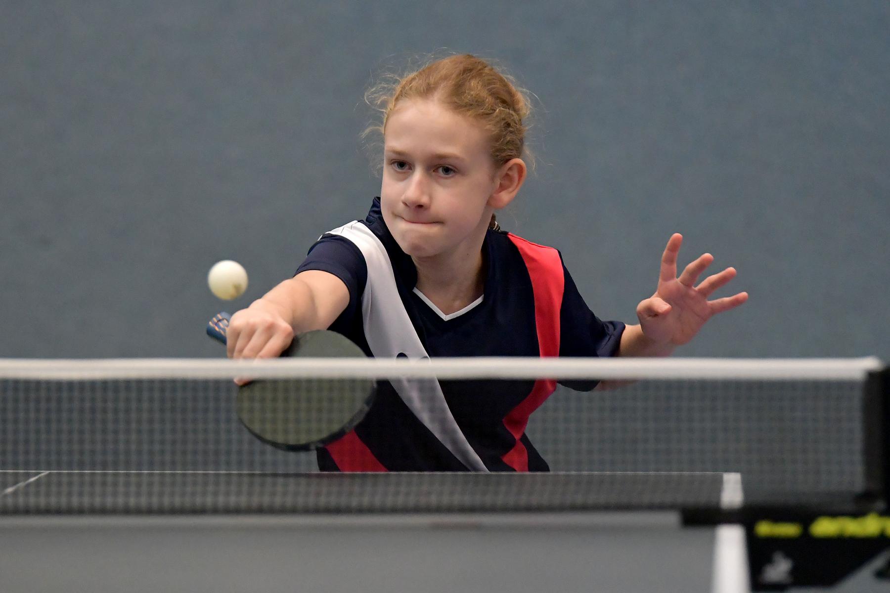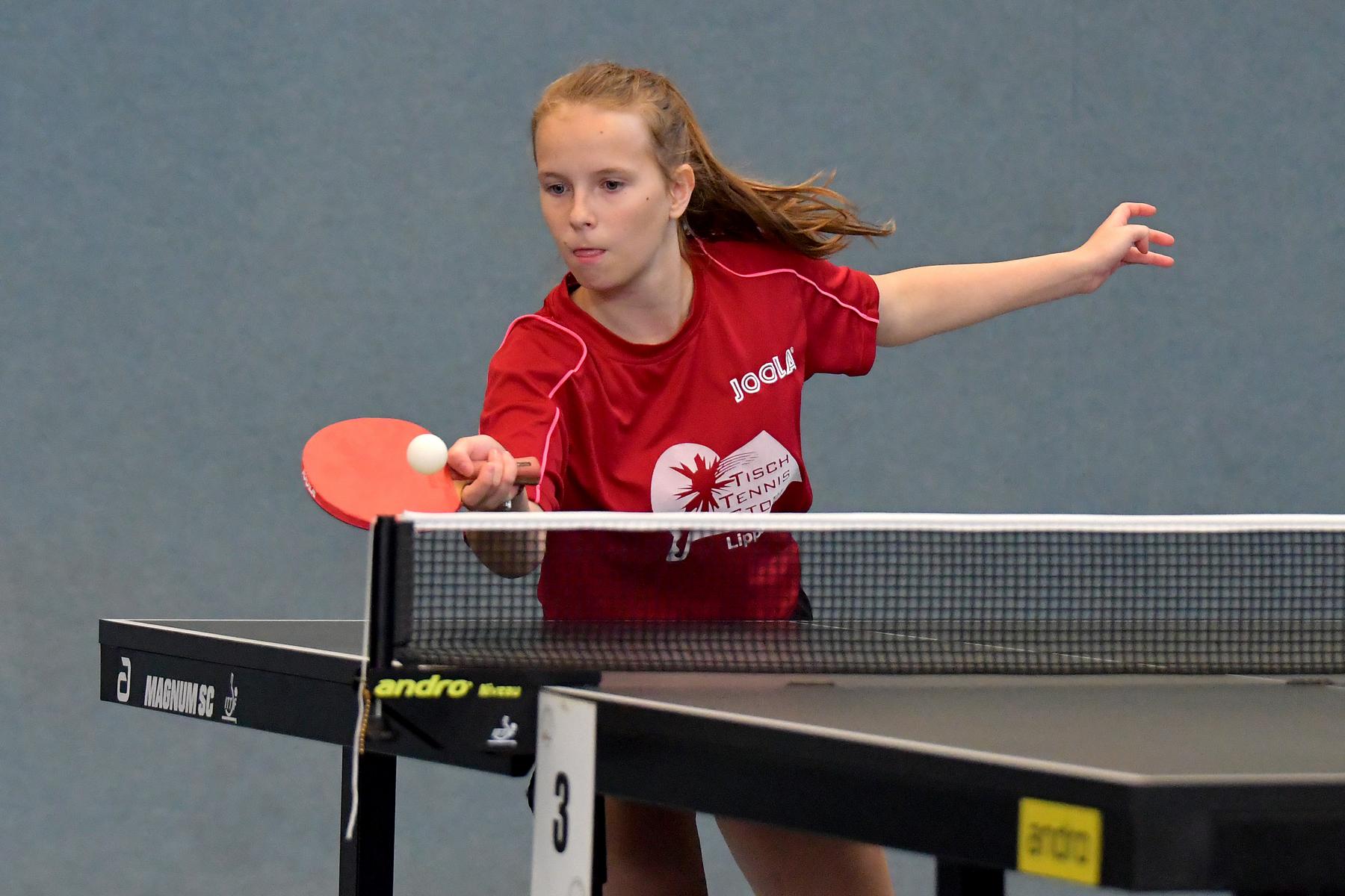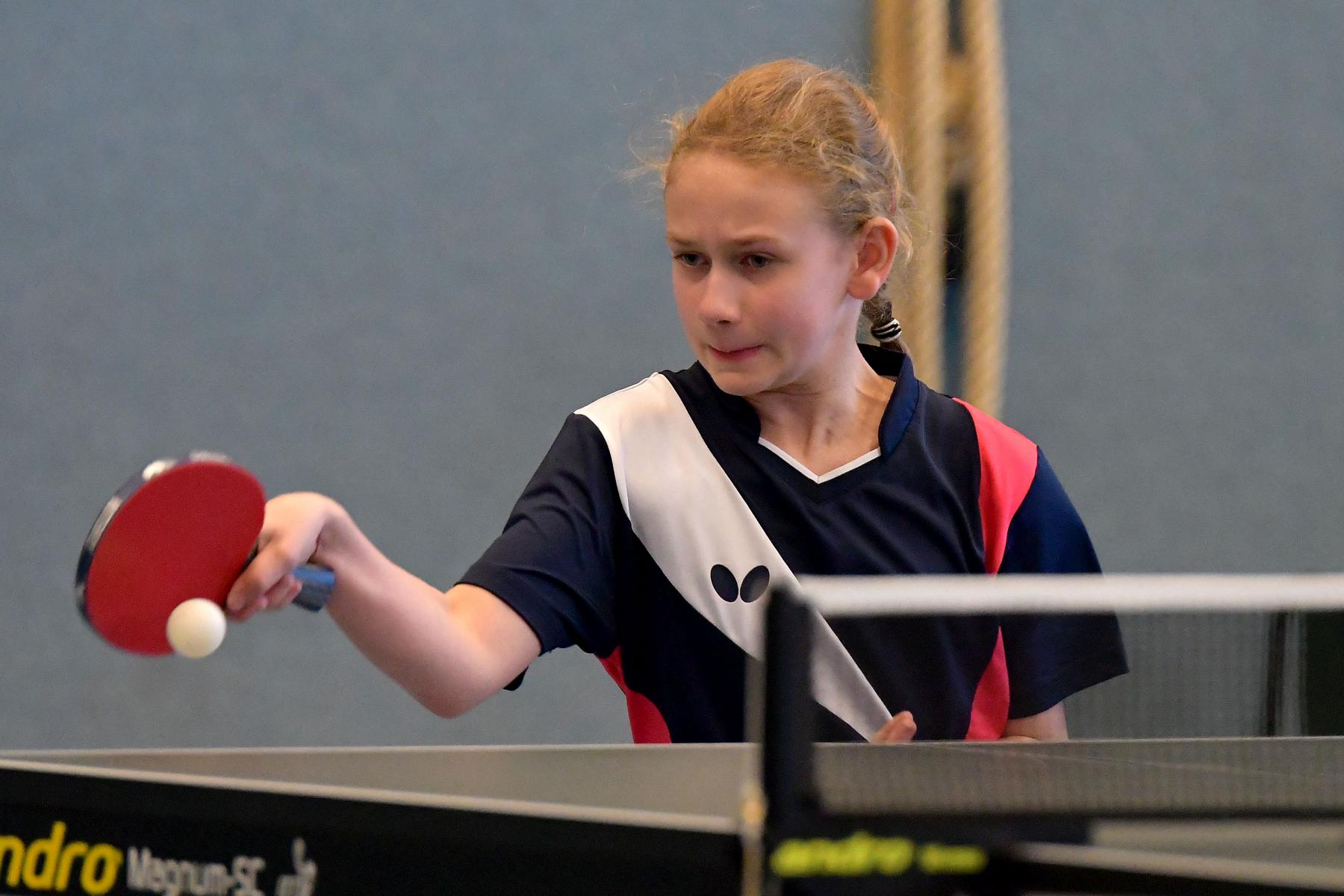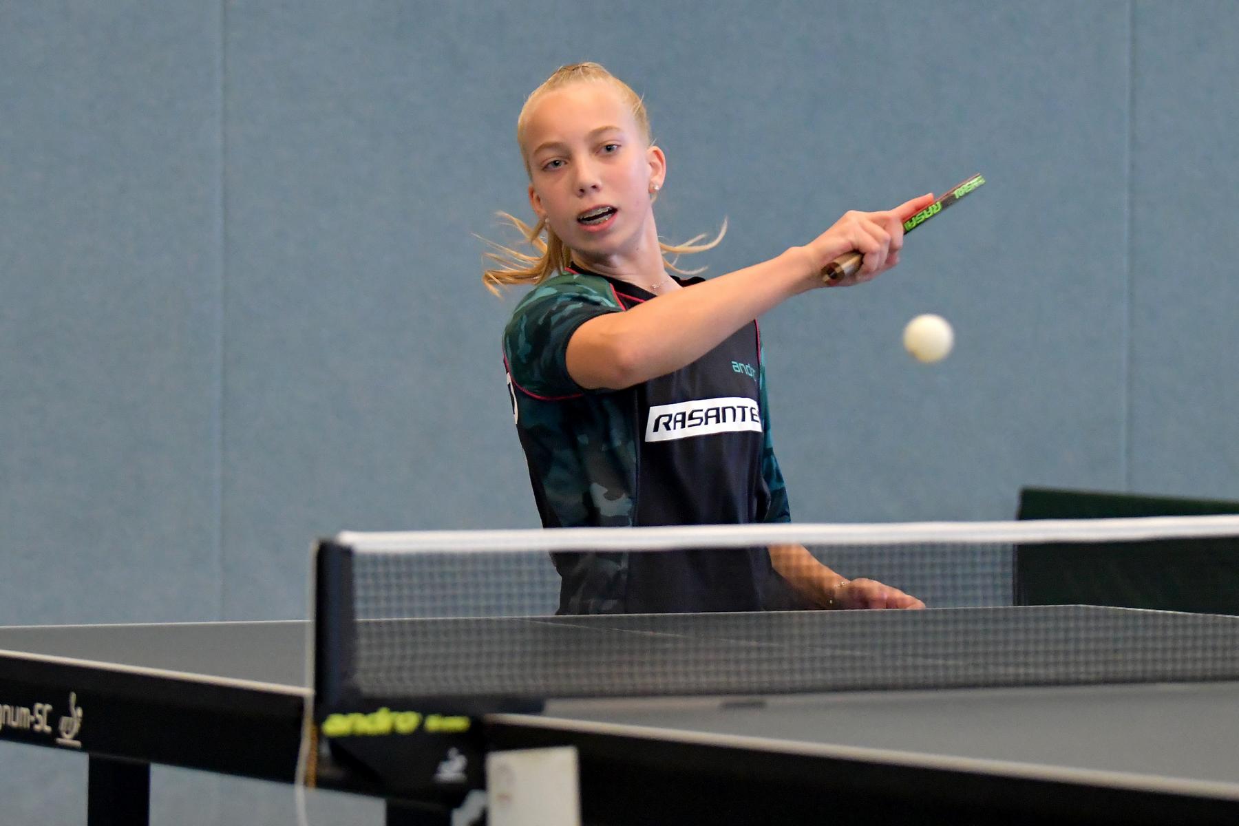 Bei den Schülerinnen konnte sich Hannah Pollmeier (TTV Hövelhof) vor ihrer Vereinskollegin Melinda Maiwald durchsetzen. Beide konnten damit die begehrten Tickets für das Bundesranglistenfinale Top 48 lösen. Direkt in der ersten Runde trafen sie aufeinander und zeigten eindrucksvoll, dass sie zu den Besten im Westen gehören. Mit 3:2 setzte sich nach einem spannenden und hochkarätigen Match Hannah durch. Dieser Sieg schenkte Hannah das notwendige Selbstvertrauen, um die nächsten Herausforderungen zu bestehen. Und diese ließen nicht lange auf sich warten. Michelle Wulff (DJK SR Cappel) sicherte sich mit 5:3 Spielen und dem besseren Satzverhältnis den dritten Platz vor Amelie Pucker (SV Bergheim). Jeweils vier Siege und vier Niederlagen standen zum Schluss für Samira Oudriss (TV Refrath) Annika Menns (Anrather TK) auf dem Turnierbogen und bedeuteten Platz fünf und sechs. Felina Busch (SC Fortuna Bonn) belegte mit 3:5 Spielen Platz sieben vor Luisa Düchting (TTG Langenich) und Katja Schütz (TSV Marienberghausen). Leider verletzte sich Medeea Grozav-Marcu (TuS Sundern) im Spiel gegen Felinda Busch so schwer, dass sie das Turnier abbrechen und sich in ärztliche Behandlung begeben musste. Auf diesem Wege wünschen wir ihr alles Gute und hoffen, dass sie bald wieder gesund ist.