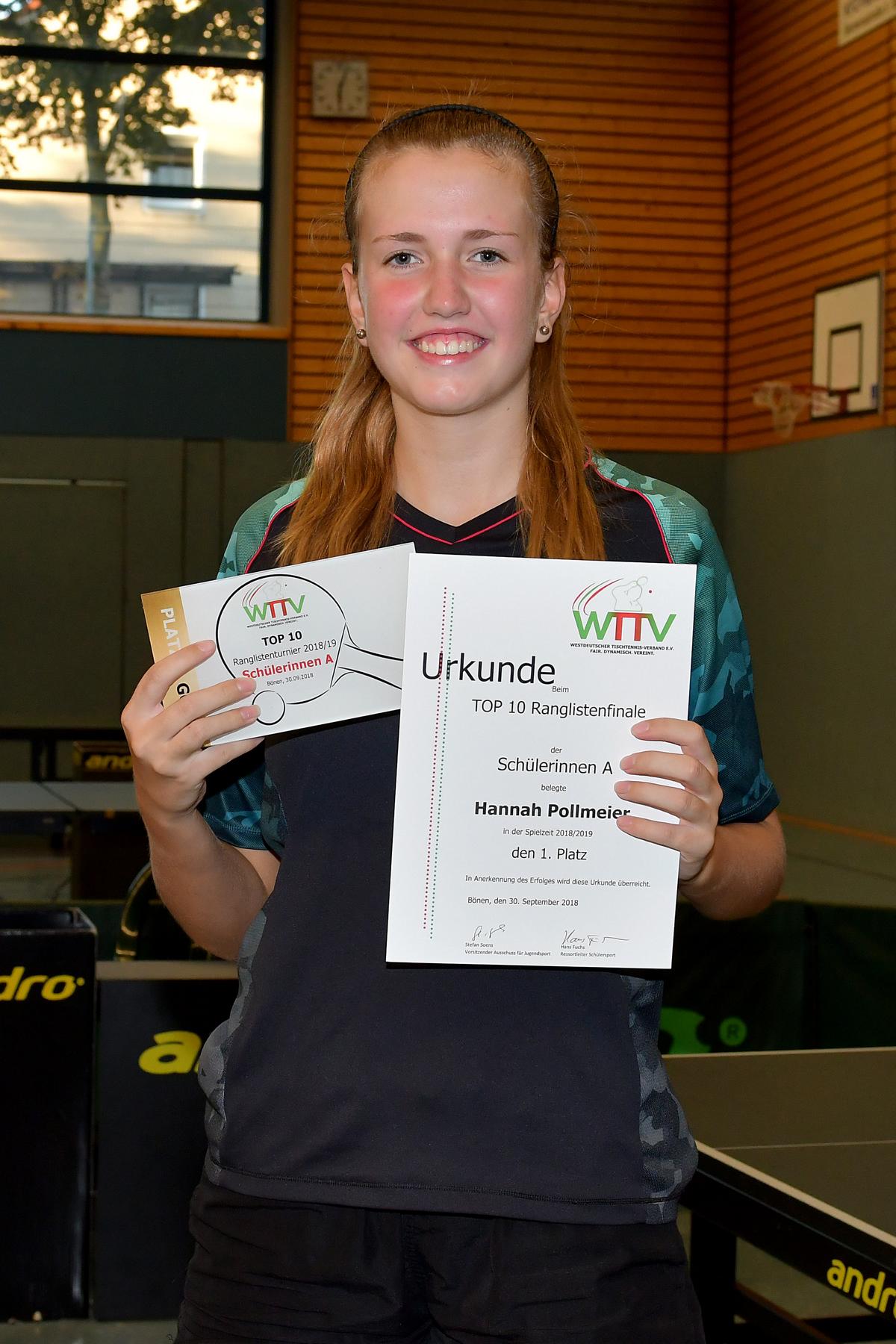 Hannah Pollmeier (TTV Hövelhof) und Marco Stefanidis (Heilinghauser SV) gewinnen die WTTV Ranglistenturniere TOP 12/10.