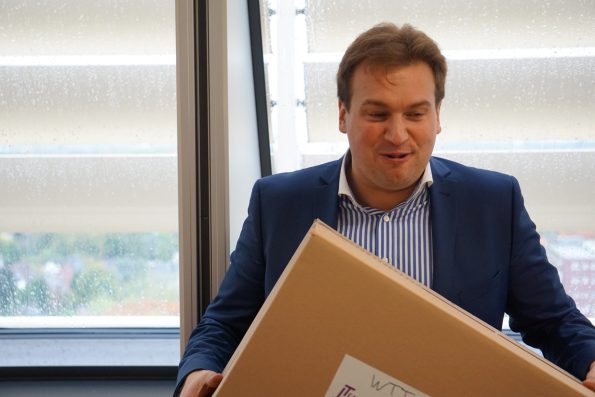 Eine große Box mit Materialien wurde dem J-Team übergeben