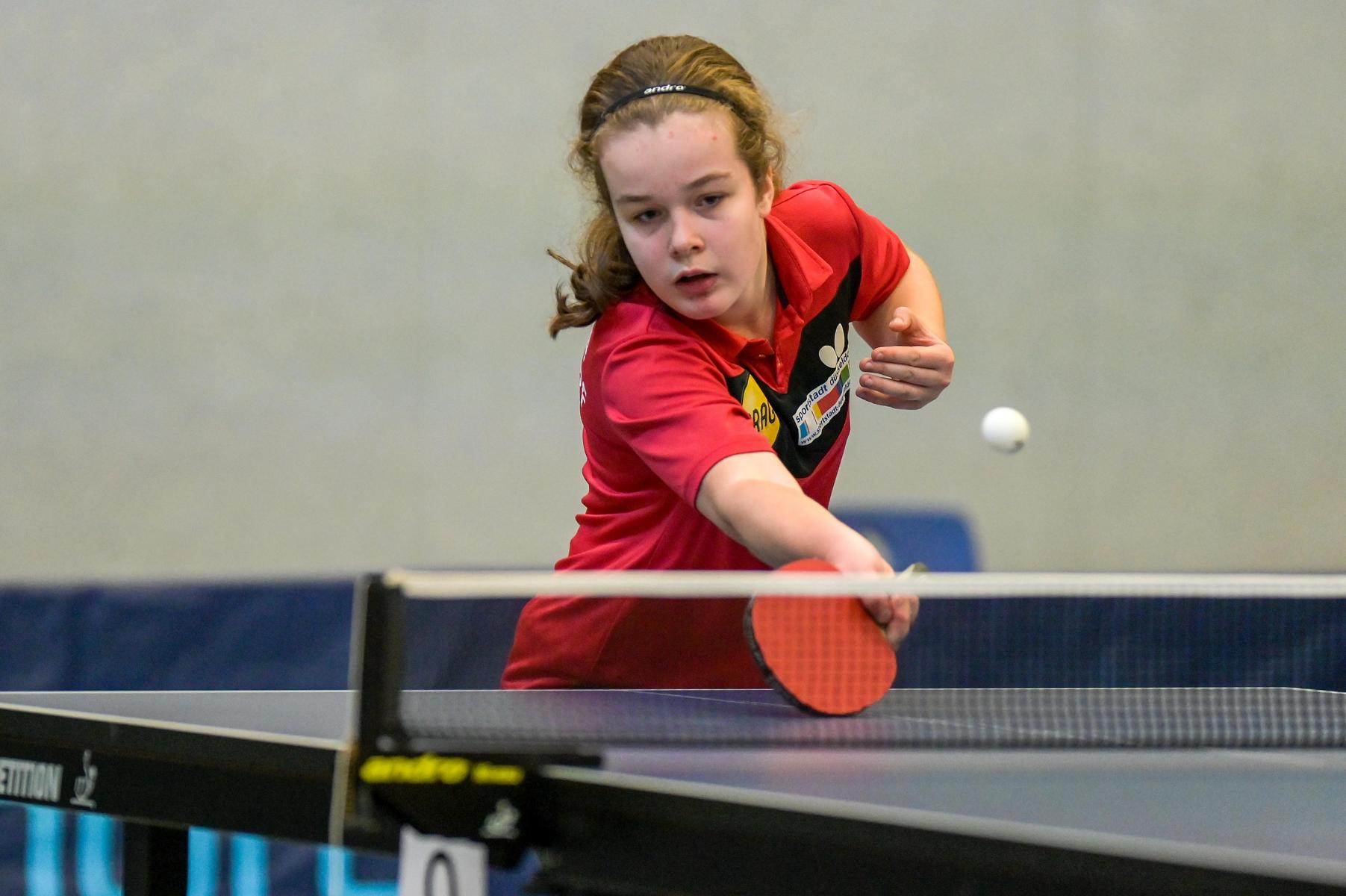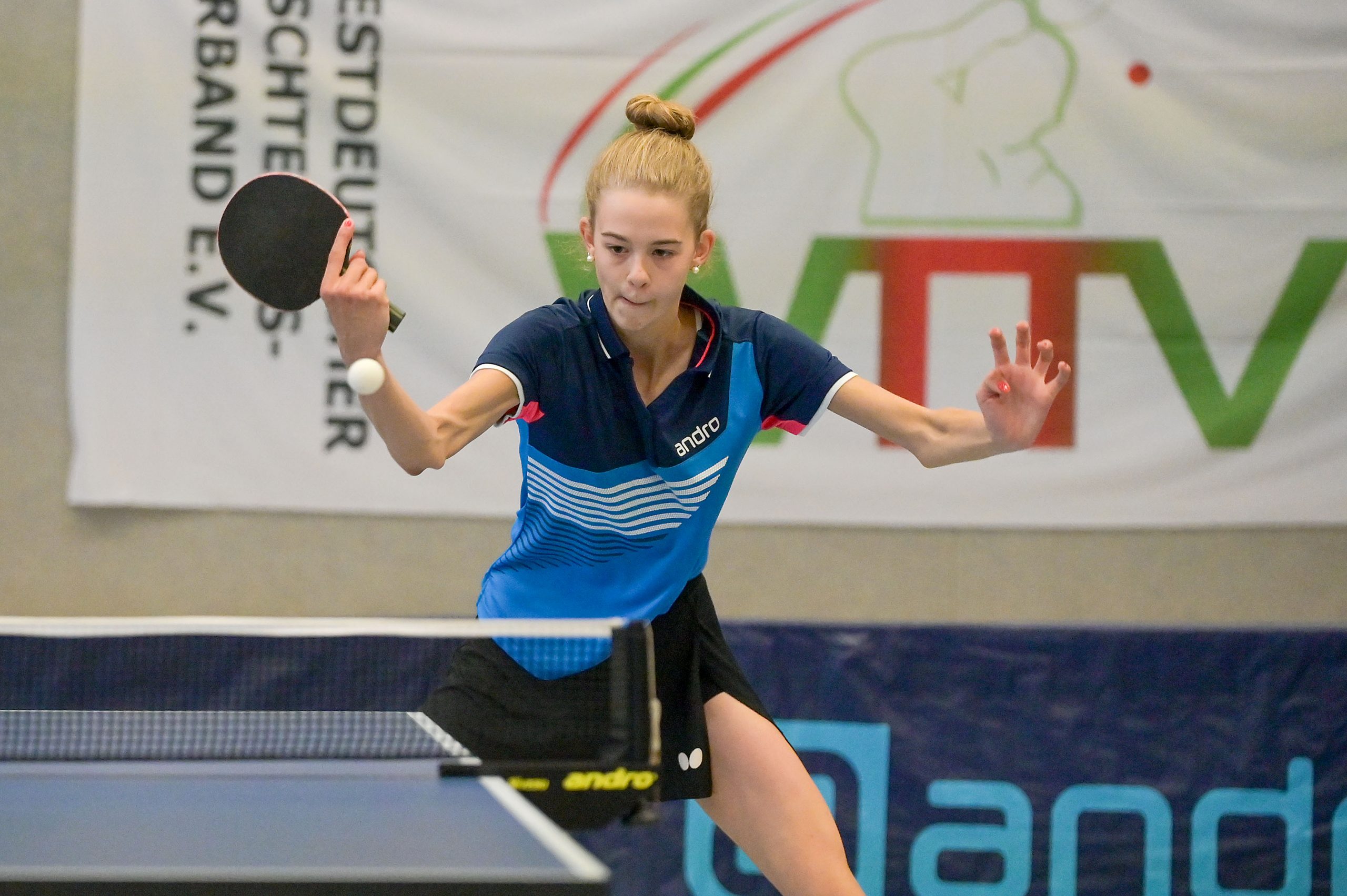 Für eine positive Überraschung sorgte in dieser Konkurrenz Felina Busch (SC Fortuna Bonn). Die Linkshänderin musste lediglich Hannah gratulieren und belegte damit den begehrten zweiten Platz. Welch ein gutes Turnier Felina spielte, zeigt auch ihre Satzbilanz von 19:6. Damit verlor sie nur genauso viele Sätze wie die souveräne Siegerin und war sehr glücklich mit dem Ergebnis: „Ich freue mich sehr über den zweiten Platz. Ich habe die letzten Wochen viel trainiert und freue mich das es geklappt hat eine sehr gute Platzierung auf Westdeutscher Ebene zu erreichen. Ich bin überwältigt und freue mich umso mehr, dass ich das TOP 48 spielen darf. Ich bedanke mich bei meinem Trainer Jonas Schmidt, der mich super durchs Turnier gebracht hat.“