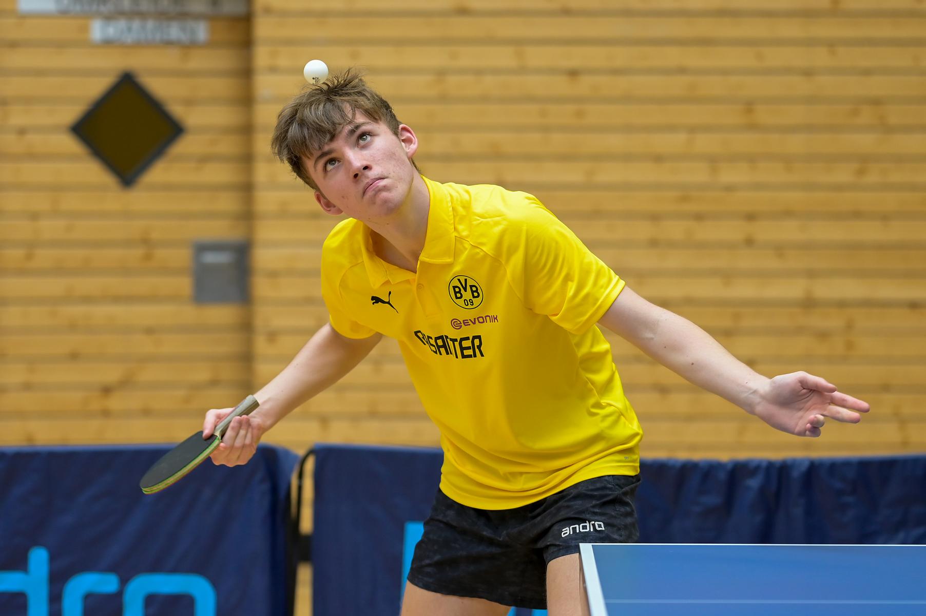 Die Jungen U18 spielten in zwei Vierergruppen um den Einzug ins Halbfinale. Die Gruppe A war mit Tobias Slanina (TTC Altena), Takuto Teramae (Borussia Düsseldorf), Andre Bertelsmeier (TTC GW Bad Hamm) und Emilo Schulz (TV Refrath) besetzt. Hier setzte sich Andre mit 3:0 Spielen vor Tobias mit 2:1 Spielen durch. Beide zogen damit in die Vorschlussrunde ein.