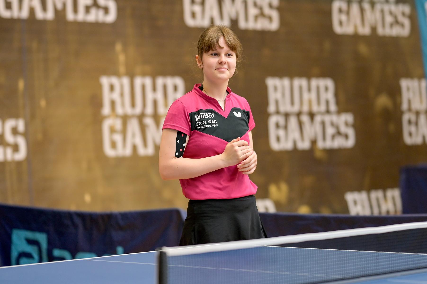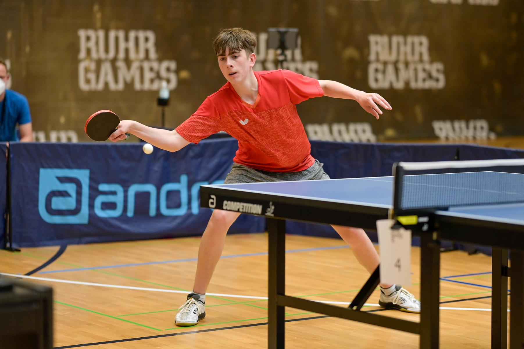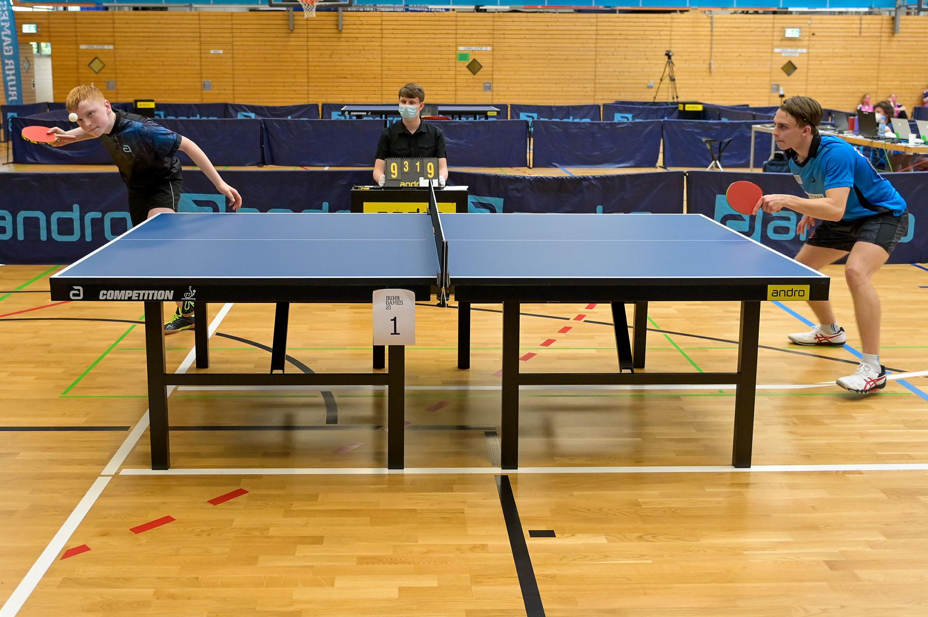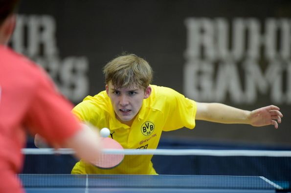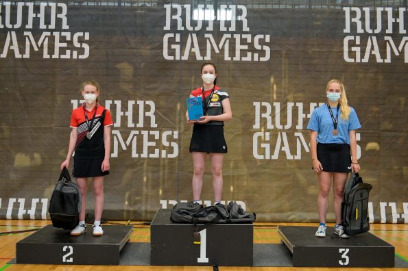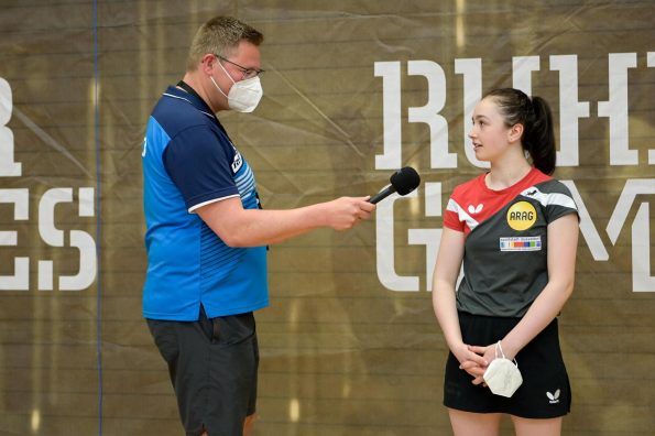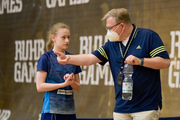 Der NRW-Cup 2021 wurde im Rahmen der Ruhr Games in der Rundsporthalle auf dem Stadiongelände des VFL Bochum ausgetragen. Die ehrenamtlichen Mitarbeiter des WTTV unter der Leitung von Thorsten Krüger haben hervorragende Bedingungen für dieses erste Turnier nach langer Zeit geschaffen. Die Kaderspieler*innen freuten sich darauf, nach über einem Jahr wieder in einem Wettkampf ihre Form abzurufen. Fünf Mädchen und acht Jungen gingen an den Start und zeigten, dass sie das Spiel mit dem kleinen weißen Ball nicht verlernt haben. Aufgrund der Corona-Regeln waren Zuschauer nicht erlaubt. Für all diejenigen, die Zuhause bleiben mussten, hat Sportdeutschland TV die Spiele von zwei Tischen im Livestream übertragen.