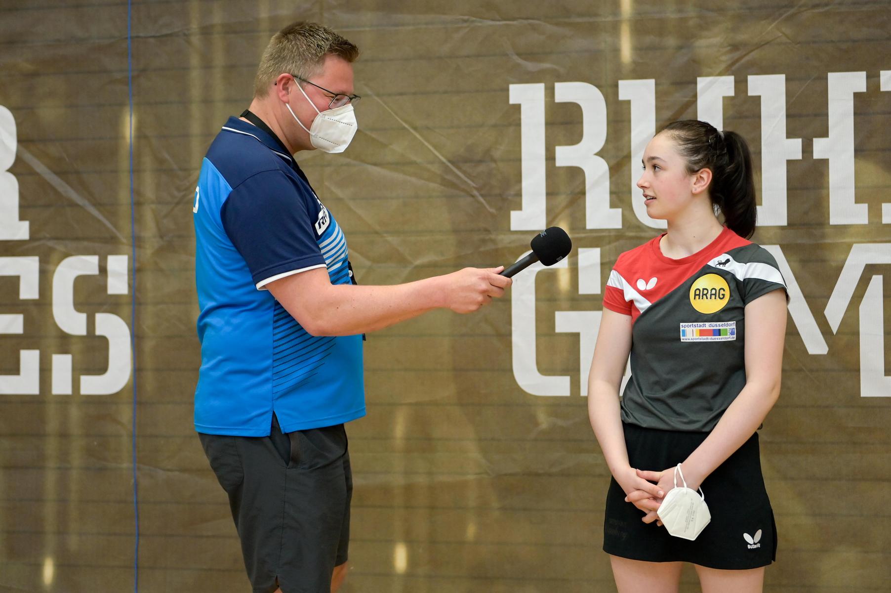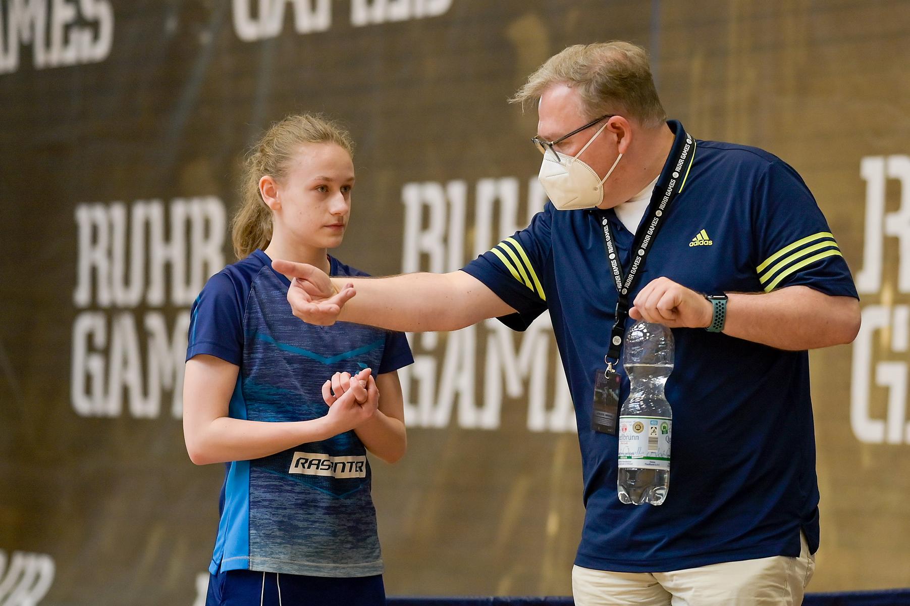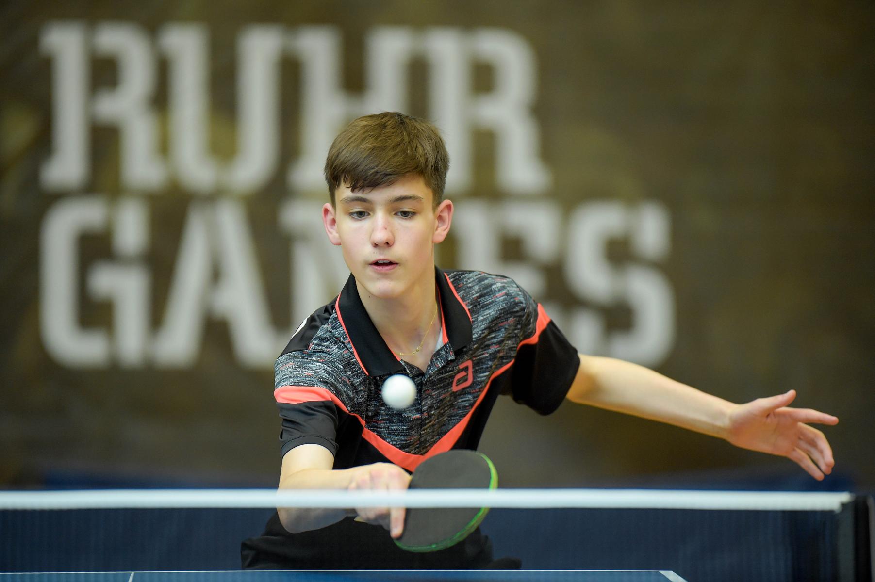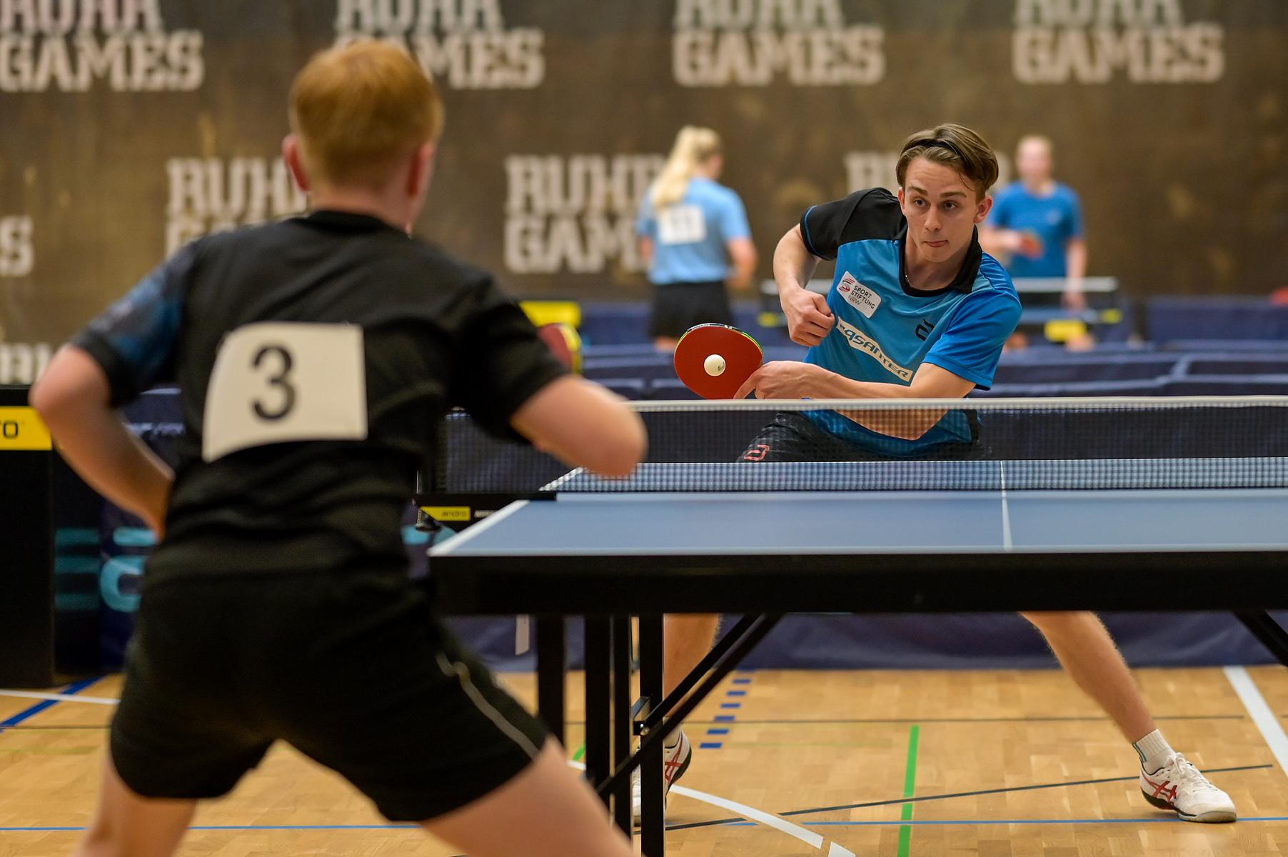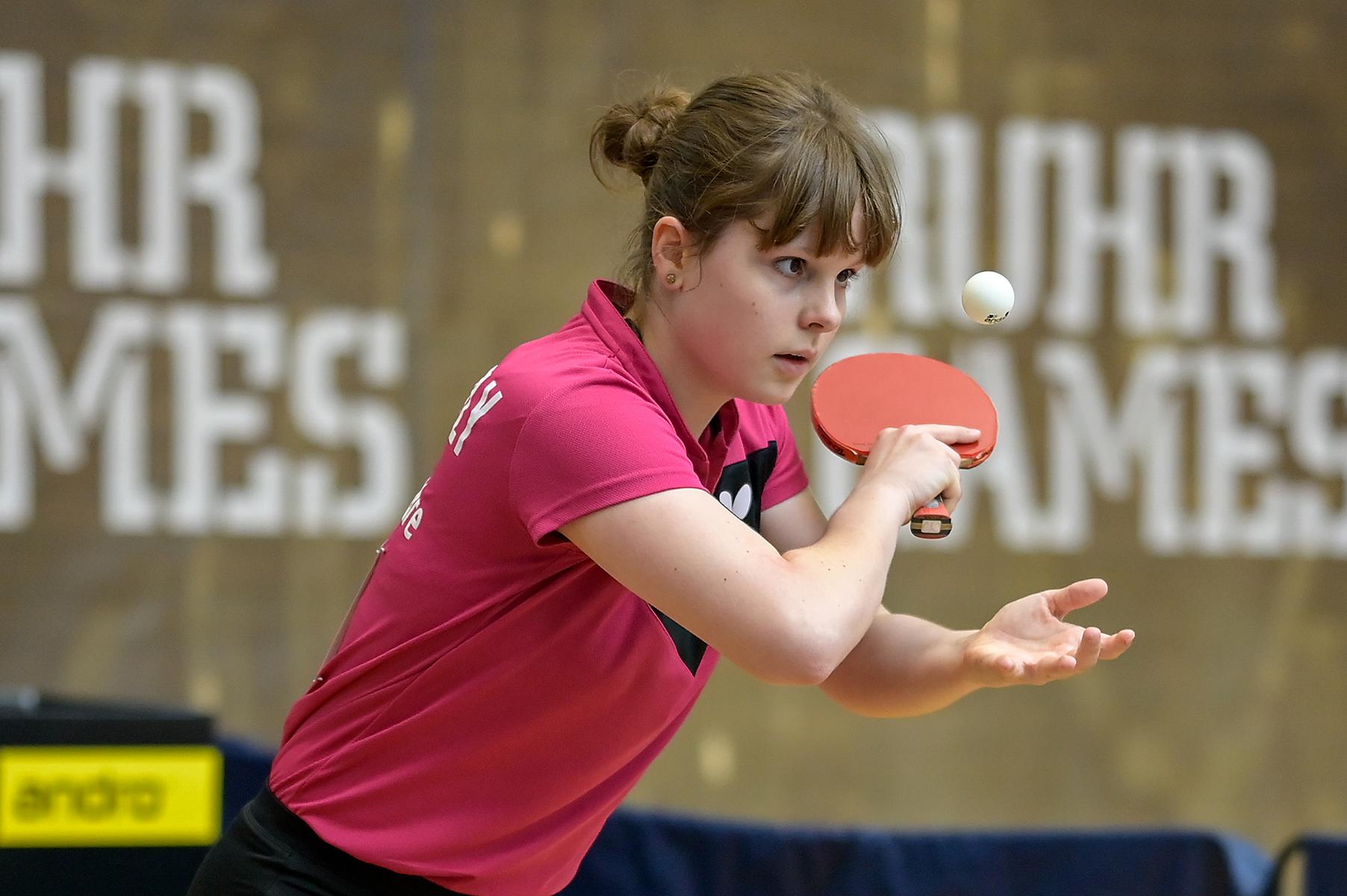 Der NRW-Cup 2021 wurde im Rahmen der Ruhr Games in der Rundsporthalle auf dem Stadiongelände des VFL Bochum ausgetragen. Die ehrenamtlichen Mitarbeiter des WTTV unter der Leitung von Thorsten Krüger haben hervorragende Bedingungen für dieses erste Turnier nach langer Zeit geschaffen. Die Kaderspieler*innen freuten sich darauf, nach über einem Jahr wieder in einem Wettkampf ihre Form abzurufen. Fünf Mädchen und acht Jungen gingen an den Start und zeigten, dass sie das Spiel mit dem kleinen weißen Ball nicht verlernt haben. Aufgrund der Corona-Regeln waren Zuschauer nicht erlaubt. Für all diejenigen, die Zuhause bleiben mussten, hat Sportdeutschland TV die Spiele von zwei Tischen im Livestream übertragen.