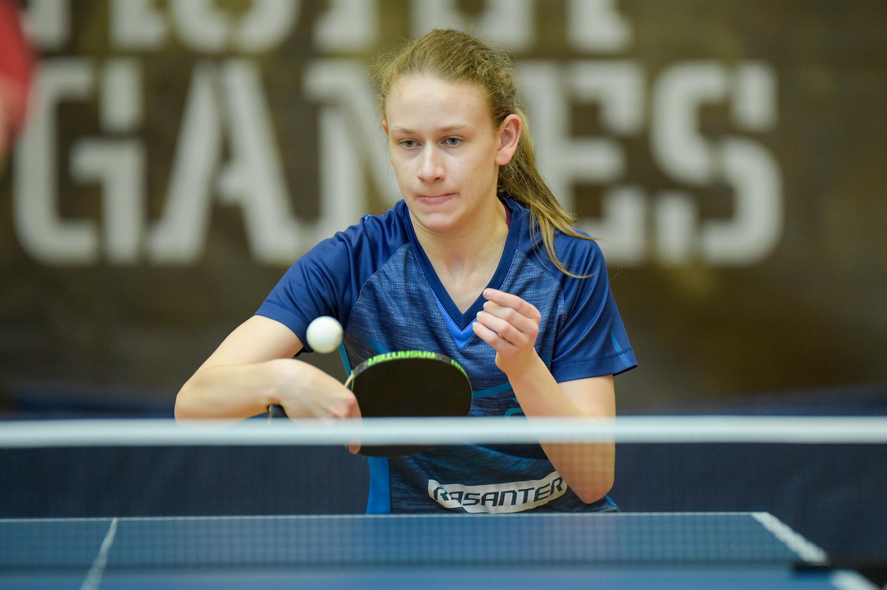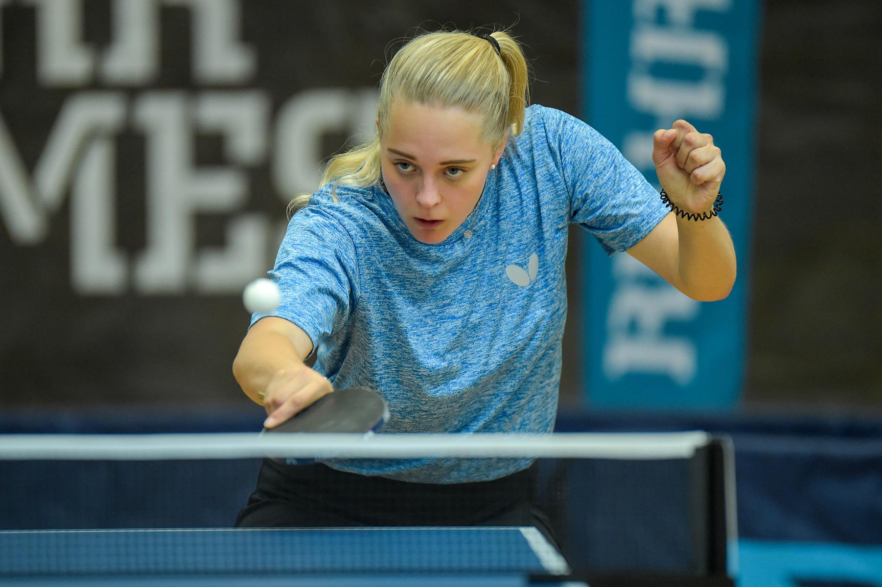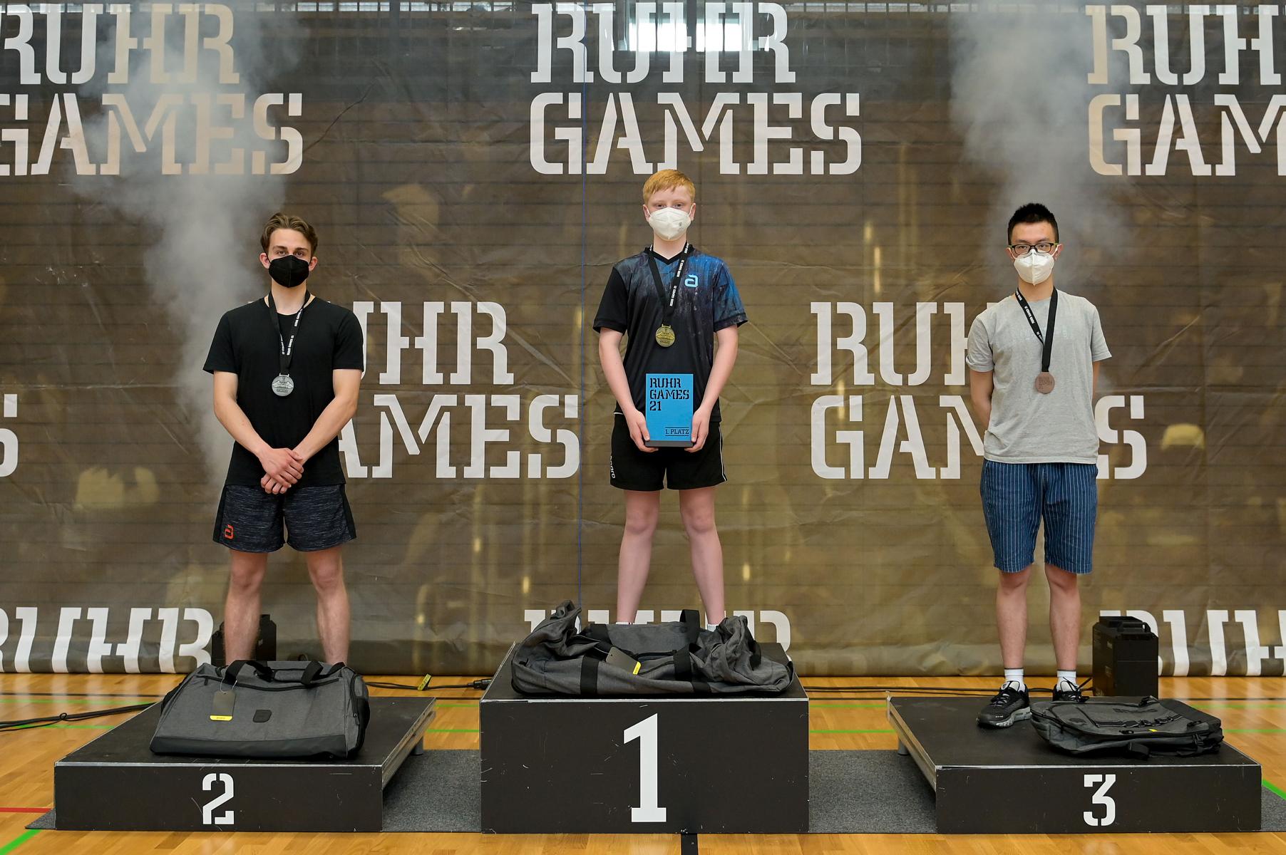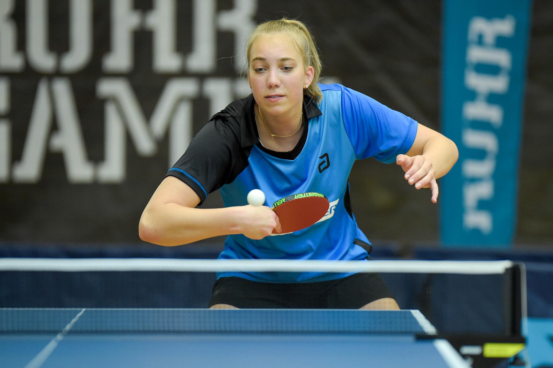 Der NRW-Cup 2021 wurde im Rahmen der Ruhr Games in der Rundsporthalle auf dem Stadiongelände des VFL Bochum ausgetragen. Die ehrenamtlichen Mitarbeiter des WTTV unter der Leitung von Thorsten Krüger haben hervorragende Bedingungen für dieses erste Turnier nach langer Zeit geschaffen. Die Kaderspieler*innen freuten sich darauf, nach über einem Jahr wieder in einem Wettkampf ihre Form abzurufen. Fünf Mädchen und acht Jungen gingen an den Start und zeigten, dass sie das Spiel mit dem kleinen weißen Ball nicht verlernt haben. Aufgrund der Corona-Regeln waren Zuschauer nicht erlaubt. Für all diejenigen, die Zuhause bleiben mussten, hat Sportdeutschland TV die Spiele von zwei Tischen im Livestream übertragen.