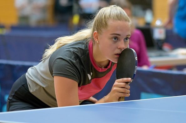 Die Mädchen U18 spielen zuerst in einer Gruppe. Für die anschließenden Halbfinalspiele konnten sich Luis Düchting (TTV Hövelhof), Eireen Kalaitzidou (Borussia Düsseldorf), Melinda Maiwald (TTV Hövelhof) und Lea Vehreschild (DJK Rhenania Kleve) qualifizieren. Angela Degueldre (TTC GW Brauweiler) konnte sich gegen die starken Konkurrentinnen nicht durchsetzen und schied als fünfte aus. Im ersten Halbfinale konnte sich Luisa gegen Lea mit 3:1 durchsetzen und zog ebenso ins Finale wie Eireen ein, die in einem Match auf Augenhöhe mit 3:1 gegen Melinda gewann.