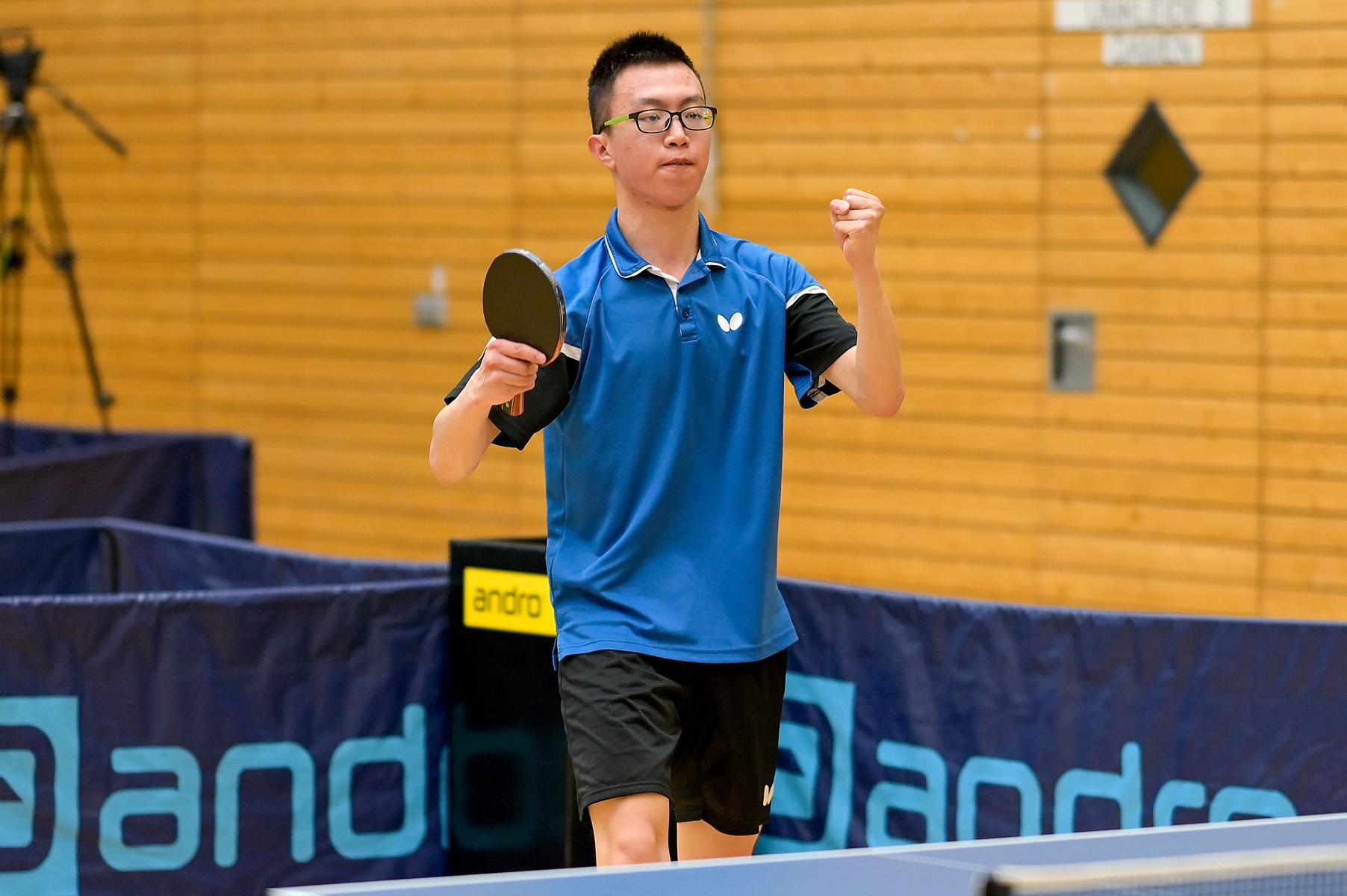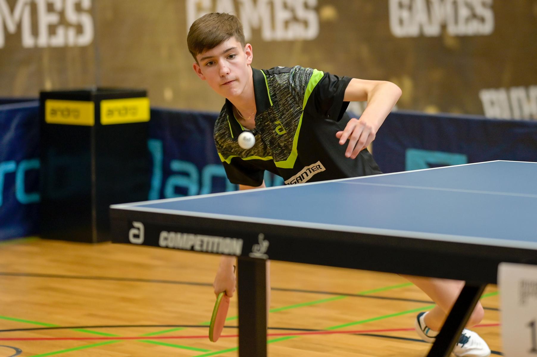 Den Platz drei bei den Jungen spielten Wim Verdonschot und Jiaxing Guo aus. Mit Taktik und Kampf setzte sich letztendlich in einem beeindruckenden Spiel Jiaxing mit 11:9, 11:8, 9:11, 11:5 und 11:9 durch.