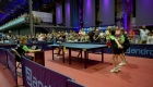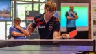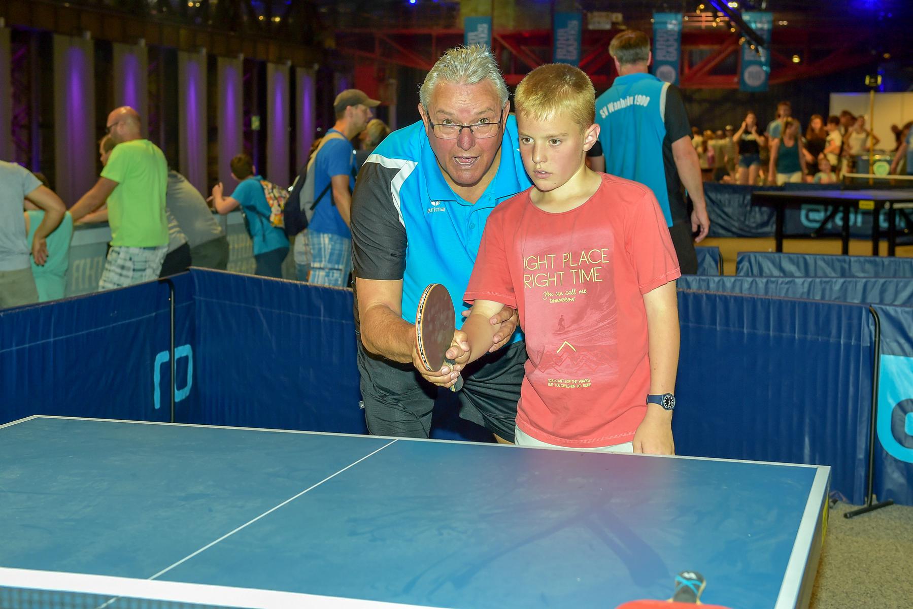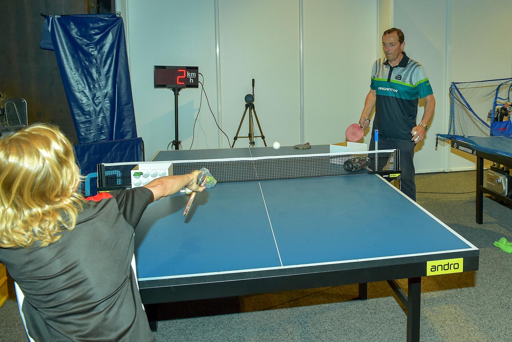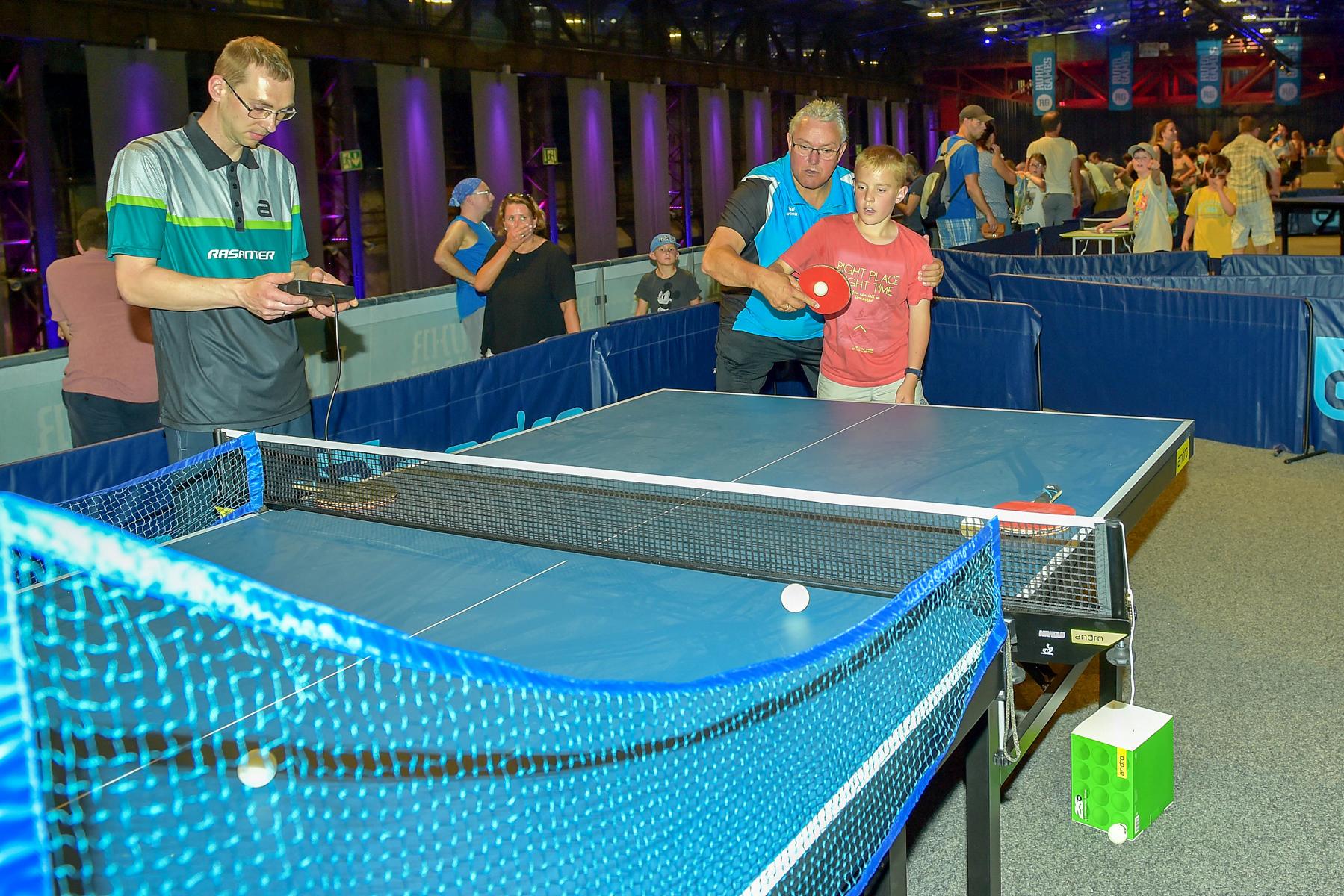 Am Wochenende fand dann das Einladungsturnier der Ruhr Games statt. Am Samstag spielten 32 Jungen und 16 Mädchen der Jahrgänge 2005 und jünger um den Titel, am Sonntag griffen dann die Jahrgänge 2003 und 2004 zum Schläger. Auch hier waren den ganzen Tag über sehr viele Zuschauer vor Ort. Der Standort war für dieses Turnier perfekt, direkt am Haupteingang standen die 8 Tische mit Gerflor-Boden. Ein Fun-Park mit Roboter, Speedmaster und mini-Tischen wurde von den Zuschauern sehr gut angenommen.